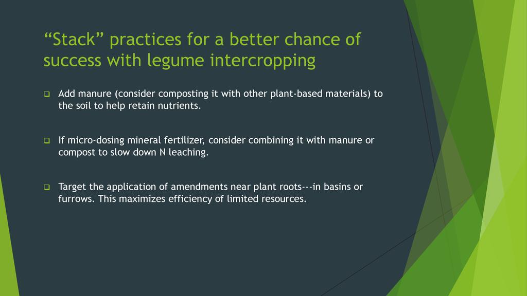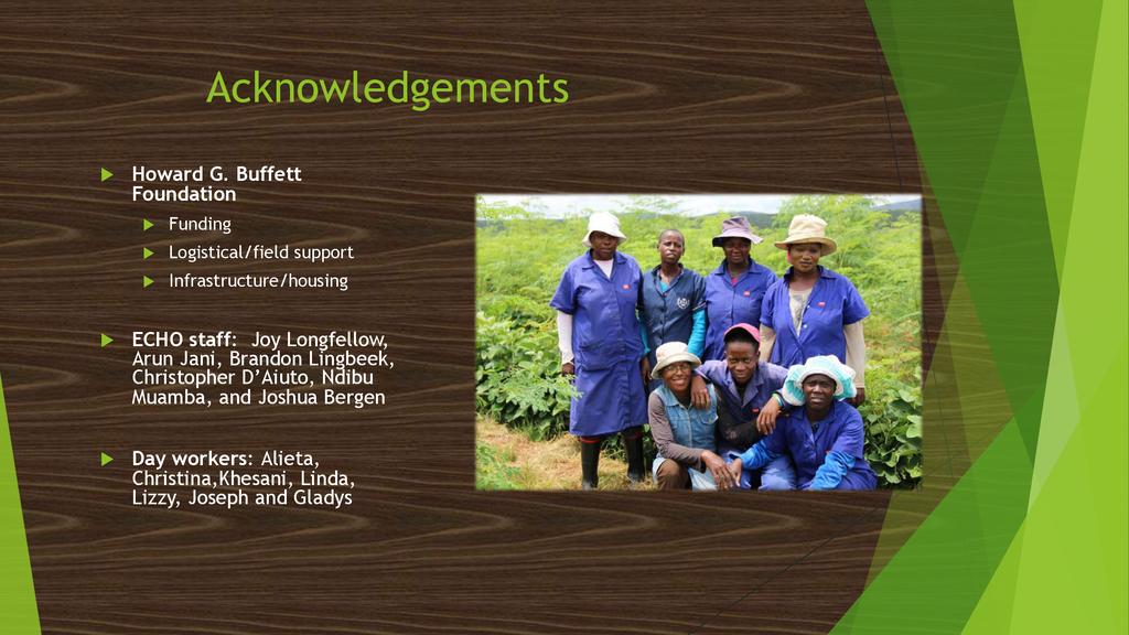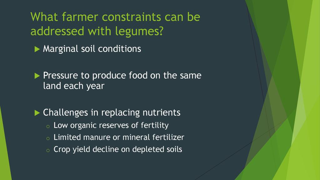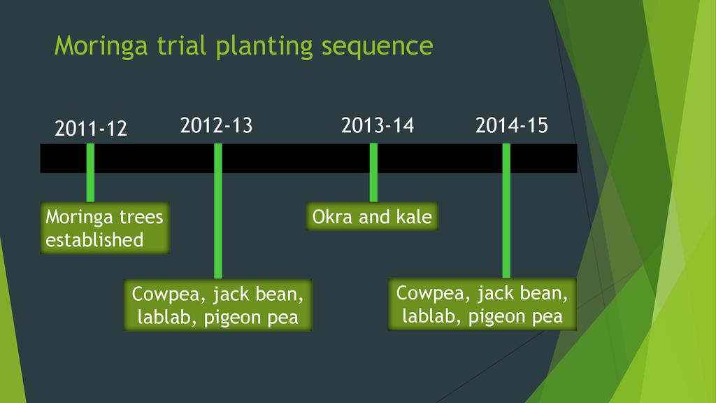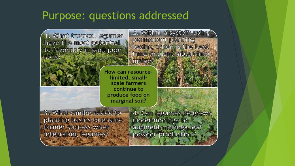 Through generous support from the Howard G. Buffett Foundation, ECHO completed a five-year (2010-2015) research project in Limpopo Province of South Africa. The central question addressed was “How can smallscale farmers in sub-Saharan Africa continue to produce food with limited resources for improving depleted soils?” Emphasis was placed on evaluating how best to utilize tropical legumes for sustained cropping of dry, sandy soils. Drawing from lessons learned over five growing seasons of field trials, Tim Motis will discuss 1) the benefits of tropical legumes and their contribution to soil ecology, 2) factors to consider in selecting a legume for your area, 3) options for inter-cropping legumes with grain crops and moringa, and 4) low-cost soil amendments to enhance farmer success with the use of tropical legumes.