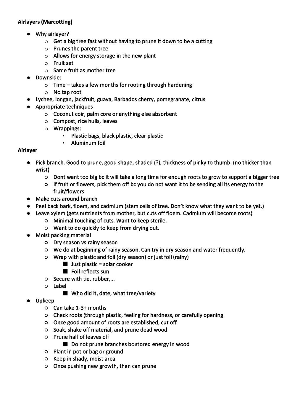 Basic vegetative propagation by air layers, cuttings and divisions, used at ECHO Florida