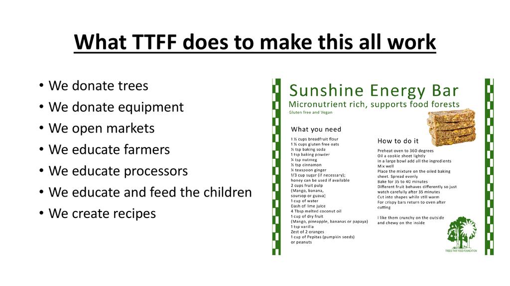 Presenter : Mary McLaughlin was born in Jamaica. She was educated there and professionally trained as a geologist. Mary worked with the Jamaican Geological Survey and later, oil companies in Dallas, Texas. Mary started McLaughlin Glazeware in 1996, making high end gifts of enamel and bone china, with prestigious clients including Lyric Opera, Abbott, the White House, and Brooks Brothers. In 2008 Mary founded Trees That Feed Foundation, with the mission of planting trees to feed people, create jobs and benefit the environment. Trees That Feed Foundation has supplied nearly 200,000 fruit trees to smallholder farmers and other groups in Jamaica, Haiti and other countries in the Caribbean, Central America and Africa. Trees That Feed Foundation also helps entrepreneurs set up their own independent businesses.