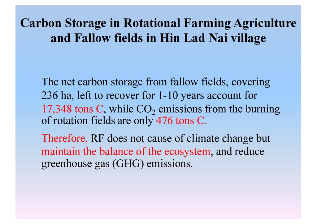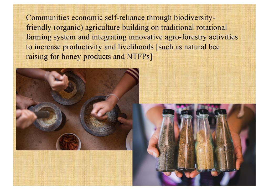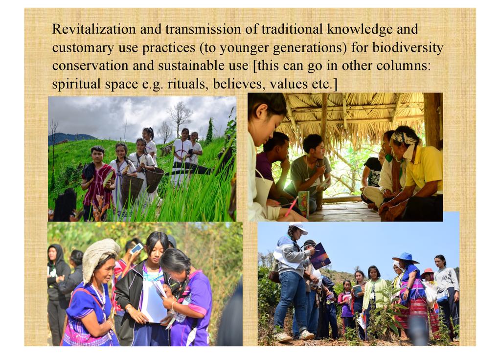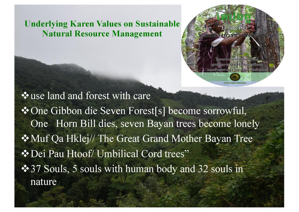 The traditional knowledge system of the Karen people in Northern Thailand connects them with the natural environment, and this linkage gives rise to sustainable models for natural resources management. Karen’s indigenous knowledge enables holistic management of natural resources and ecosystems for long-term purposes taking into account future generations. The Hin Lad Nai Karen Community exemplifies this perspective. Their dynamic rotational agriculture practices and innovations enables food security and greater biodiversity of plants and wildlife in the Karen landscape and ecosystem. With low carbon emission, Karen’s rotational cropping system mitigates climate change. Noticeably, local wisdom blends well with latest technologies, such as the Global Information System (GIS), in natural resources management. Rotational farming and non-timber forest products created additional value in terms of income and towards self-reliant economy for the local community in harmonious and interdependent manner. Overall, the benefits derived from dynamic rotational farming system contribute to the global sustainable development goals (SDGs).