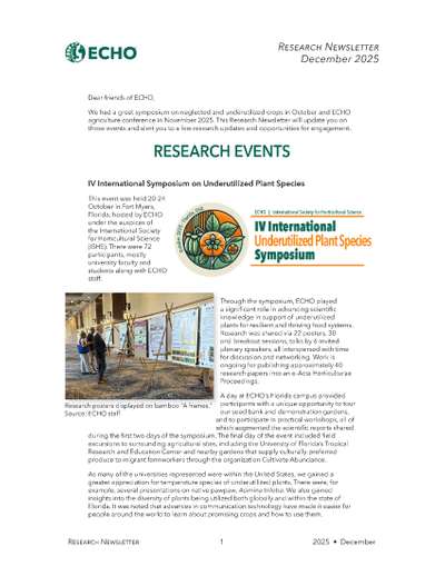 - Research Events: IV International Symposium on Underutilized Plant Species and ECHO International Agriculture Conference (EIAC)