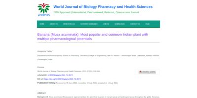 Banana (Musa acuminata): Most popular and common Indian plant with multiple pharmacological potentials
