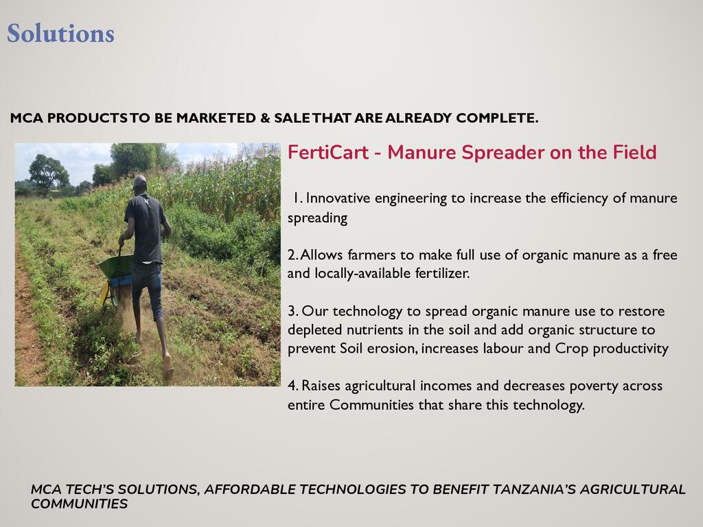 Frank shares his experience with manure spreading and the impact that has been realized by farmers through his equipment. The manure spreader is an intermediate and scalable technology used to increase soil fertility and crop productivity by evenly spreading manure on fields. This machine includes a rotor shaft, manure guides, and clutch mounted on a cart drawn by an animal or motorbike. Most farmers apply manure by shoveling, while others burn it as waste because the process of spreading is too hard.