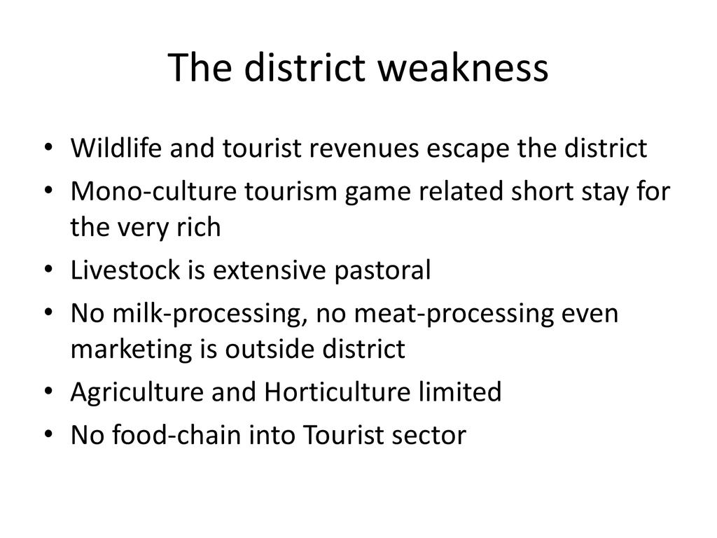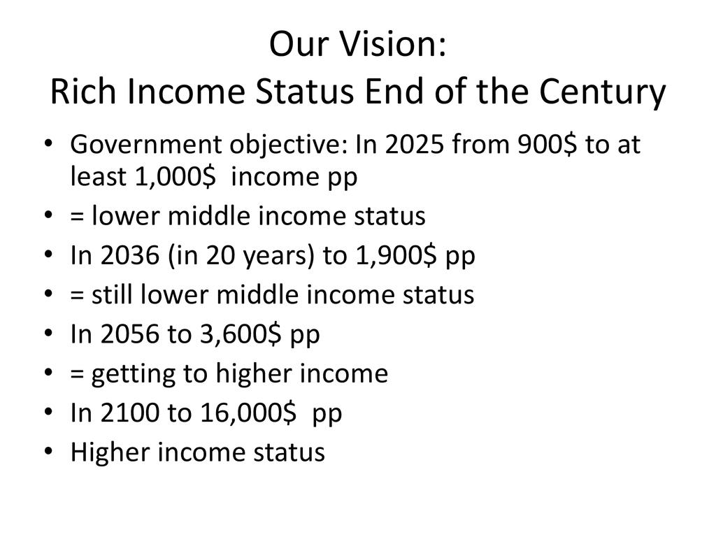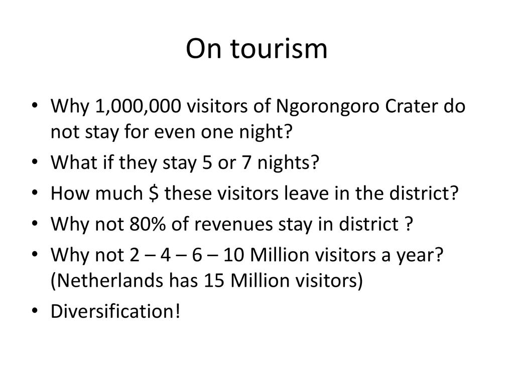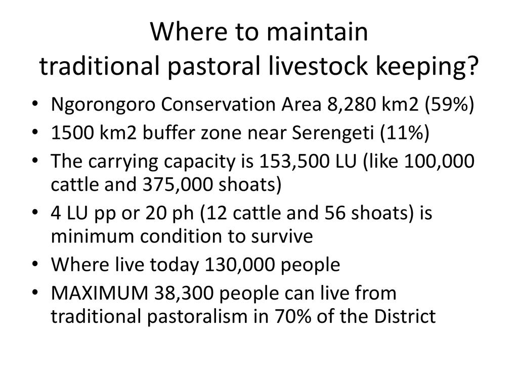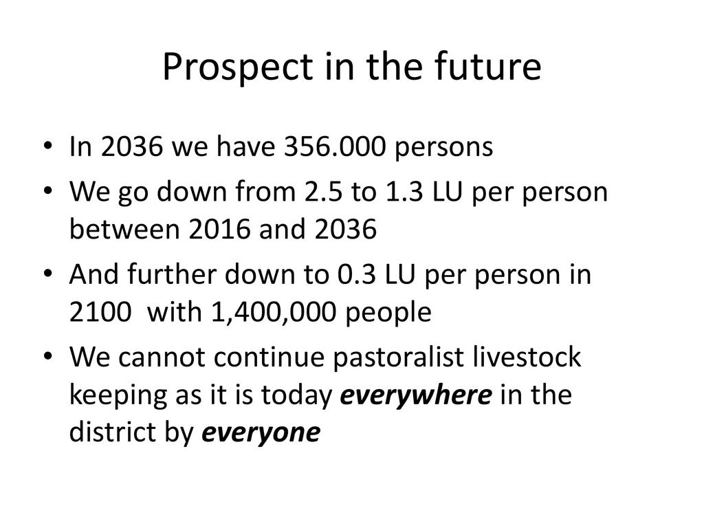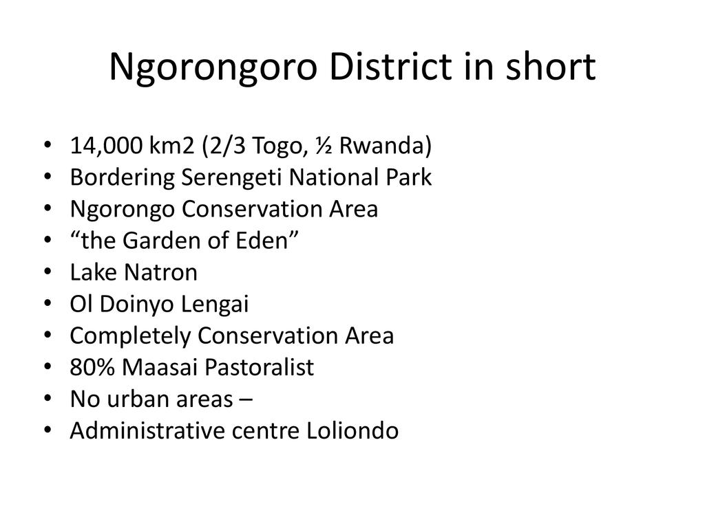 Ngorongoro District, part of the Serengeti Ecosystem witnessed a human population growth from approximately 25,000 in the early sixties to 200,000 people in 2016, predominantly pastoralist Maasai. Pastoralism as we know it today can be combined with photo tourism and game hunting activities for only 35,000 to 40,000 people in the Ngorongoro Conservation Area and the area bordering the Serengeti Park or altogether 70% of the district surface. At this moment some 160,000 people may grow to nearly 1.4 million by the end of the century. Economic alternatives need to be created in the remaining 30% of the district territory. Intensification of livestock and agriculture, combined with diversification of tourism, forestry, mining and using the sustainable energy potential of the area are needed to achieve middle income status between 2037 and 2057 and high income status by the end of the century. Today the revenues of tourism and mining escape the district population and the other sectors are underdeveloped. The district needs socially responsible companies and investors who want to maintain high environmental standards to prevent rapid exhaustion and exploitation of the natural and human resources.