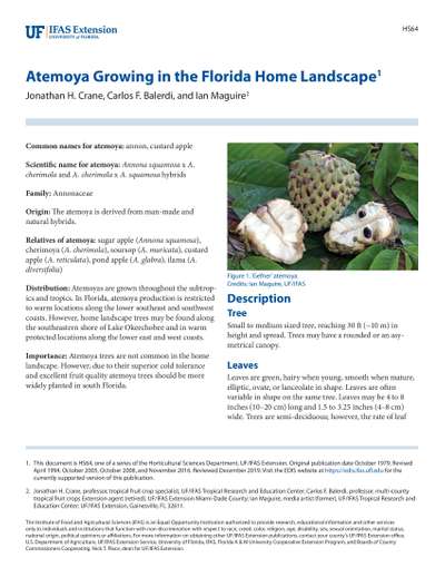 Distribution: Atemoyas are grown throughout the subtropics and tropics. In Florida, atemoya production is restricted to warm locations along the lower southeast and southwest coasts. However, home landscape trees may be found along the southeastern shore of Lake Okeechobee and in warm protected locations along the lower east and west coasts. Importance: Atemoya trees are not common in the home landscape. However, due to their superior cold tolerance and excellent fruit quality atemoya trees should be more widely planted in south Florida.
