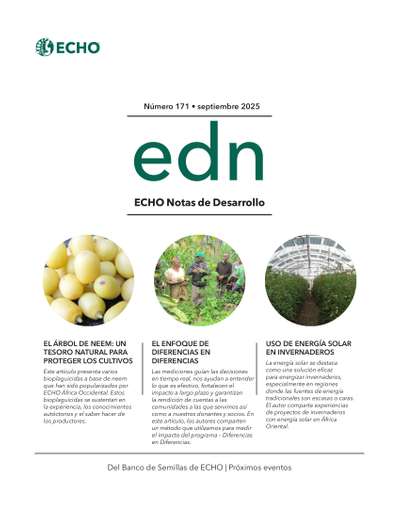 Este artículo presenta varios bioplaguicidas a base de neem que han sido popularizados por ECHO África Occidental. Estos bioplaguicidas se sustentan en la experiencia, los conocimientos autóctonos y el saber hacer de los productores.