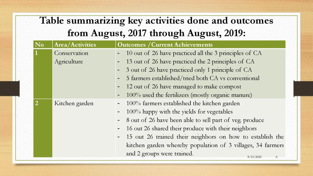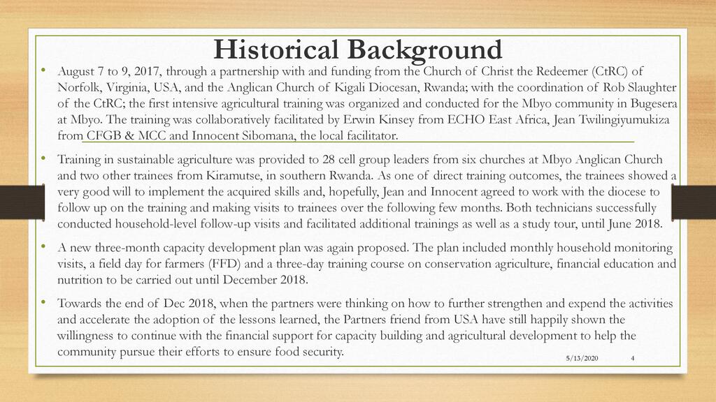 Session: Farmer to farmer follow up is playing a complementary role to formal extension services in facilitating the spread of agriculture technologies and the improvement of food security across rural village, Kiramutse, Southern Province of Rwanda. This session will discuss the importance of follow up to achieve high adoption. Consistently following up with farmers who have received agriculture training reveals the successes and challenges they are experiencing. It also allows guidance to correct for any procedures not being followed or to identify areas that may be unique to a family’s situation. Lastly, consistent, humble and loving follow-up communicates to the farmer that has value and dignity. This encouragement can show that she/he is capable of changing the health of her family in a dramatic way.
