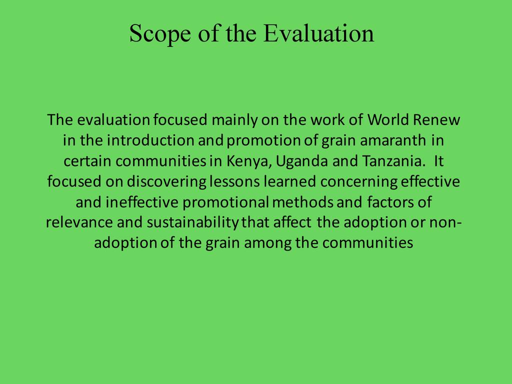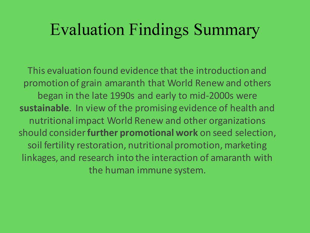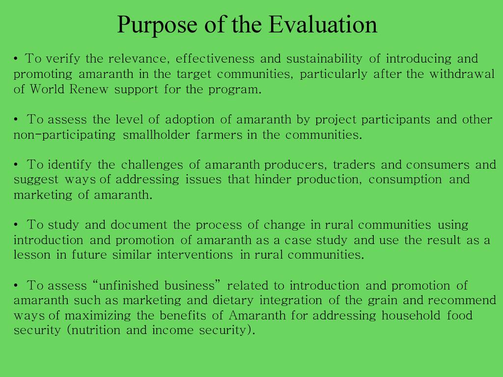 Lessons Learned from an Ex-Post Evaluation of the Introduction & Promotion of Grain Amaranth Program in Eastern Africa: 1998-2008