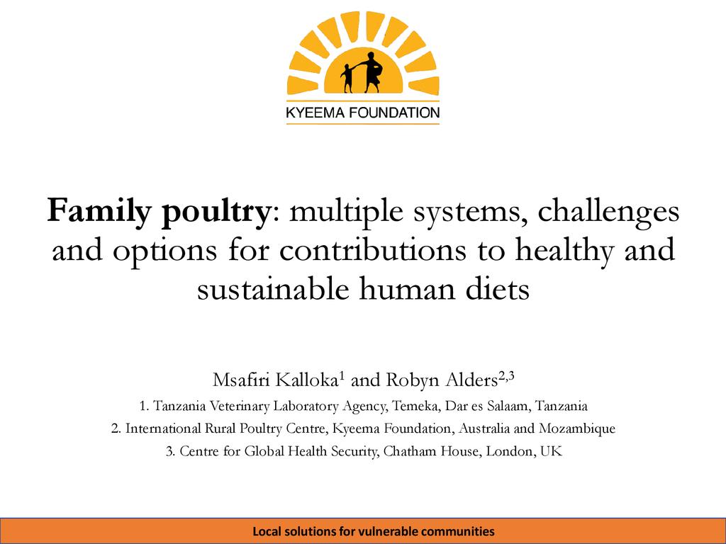 Additional presentation included : Family poultry: multiple systems, challenges and options for contributions to healthy and sustainable human diets