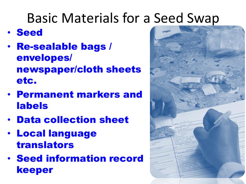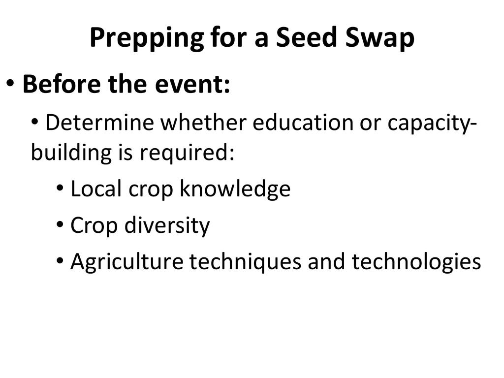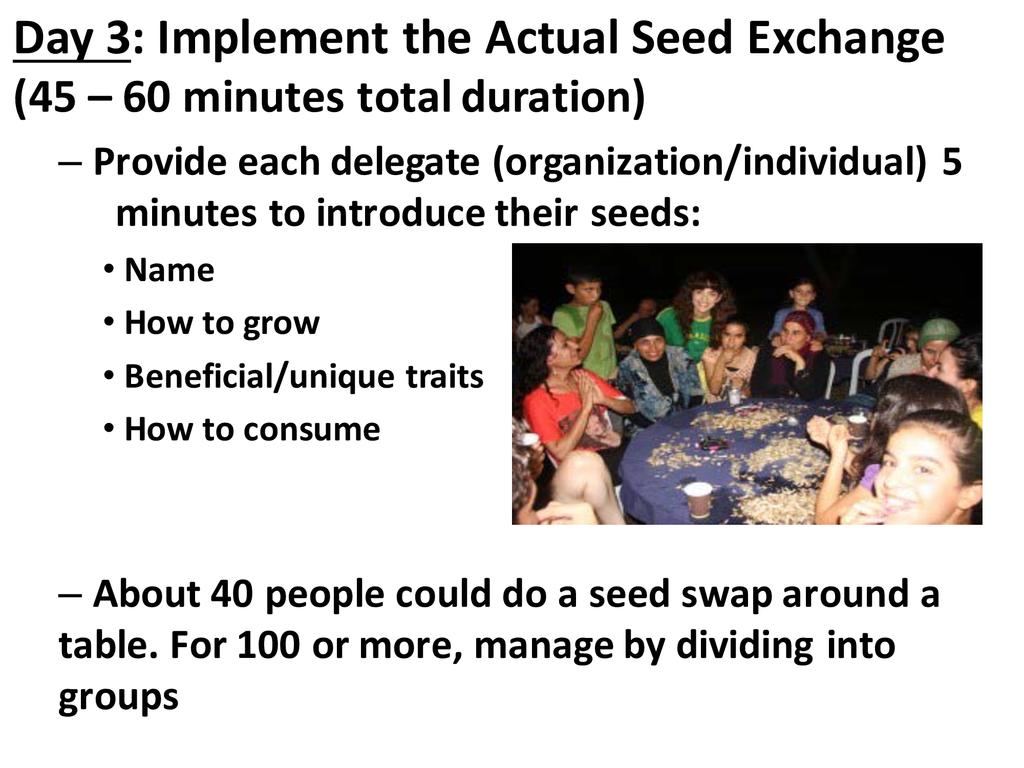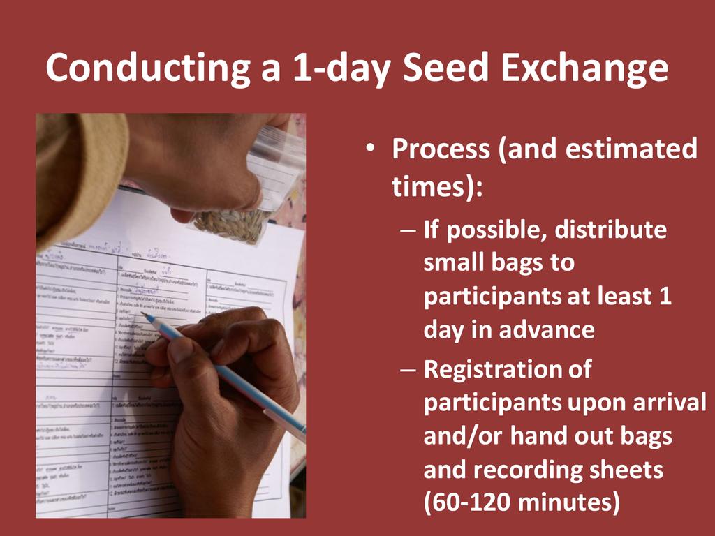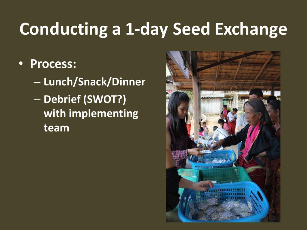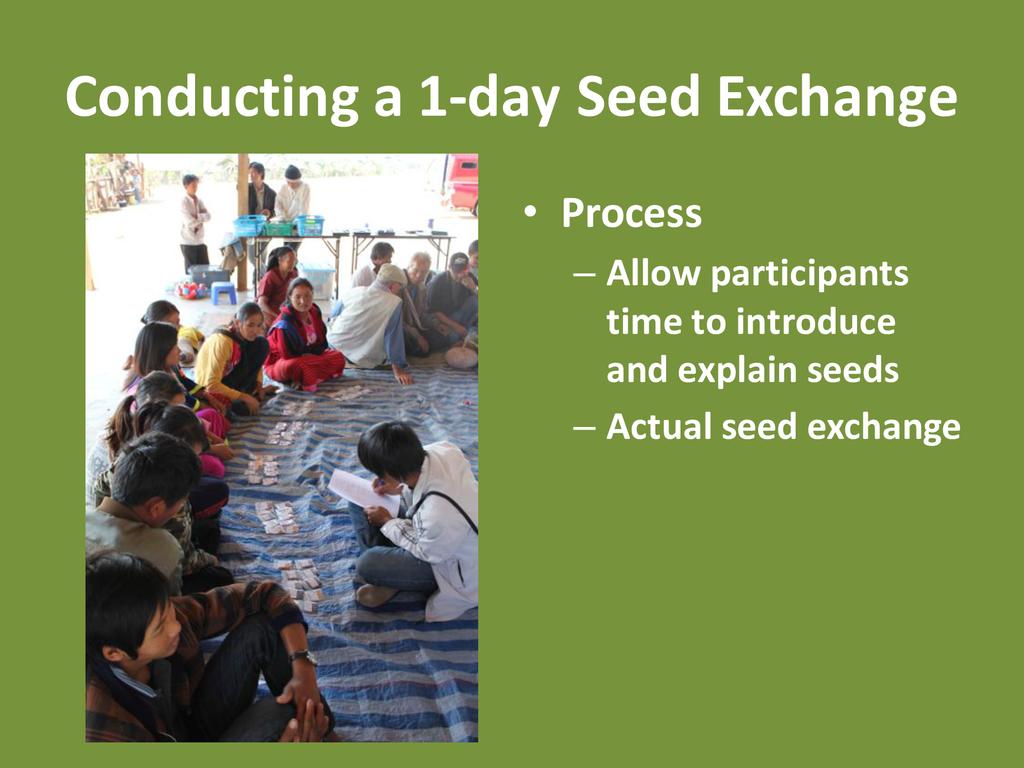 A basic outline and breakdown on how to conduct a community-level seed exchange so that participants can implement one in their home communities and workplaces.