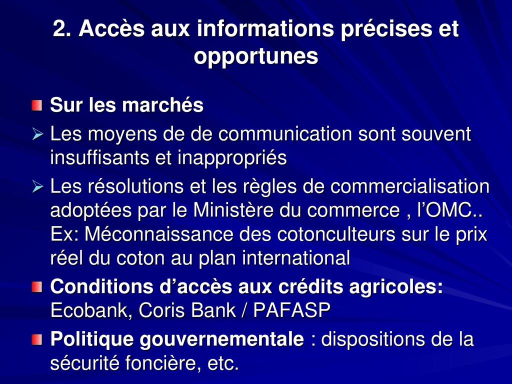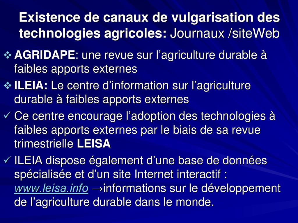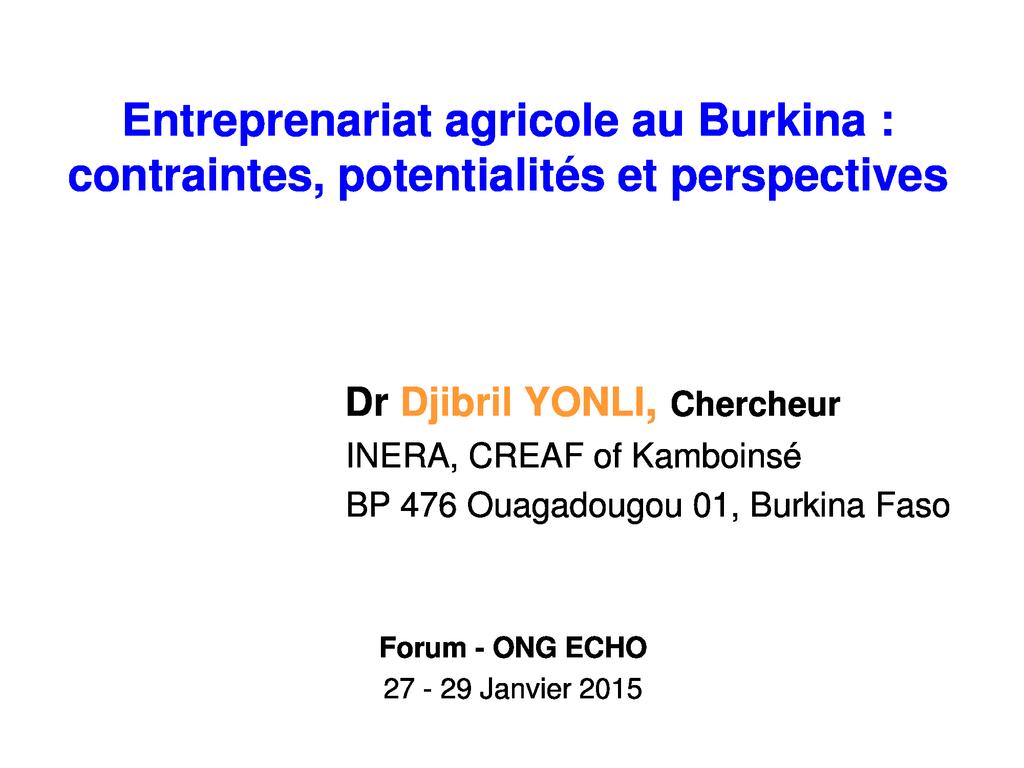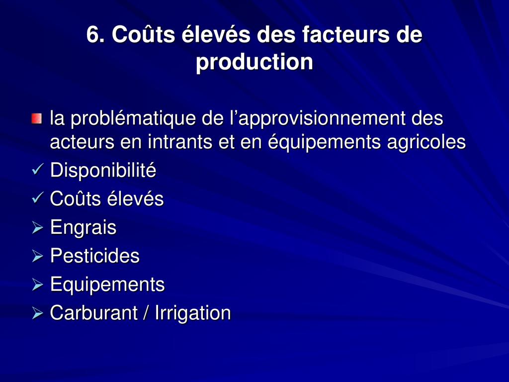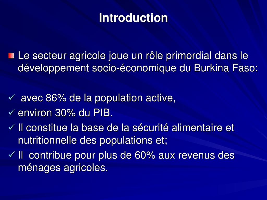 • Il contribue pour plus de 60% aux revenus des ménages agricoles. Introduc
