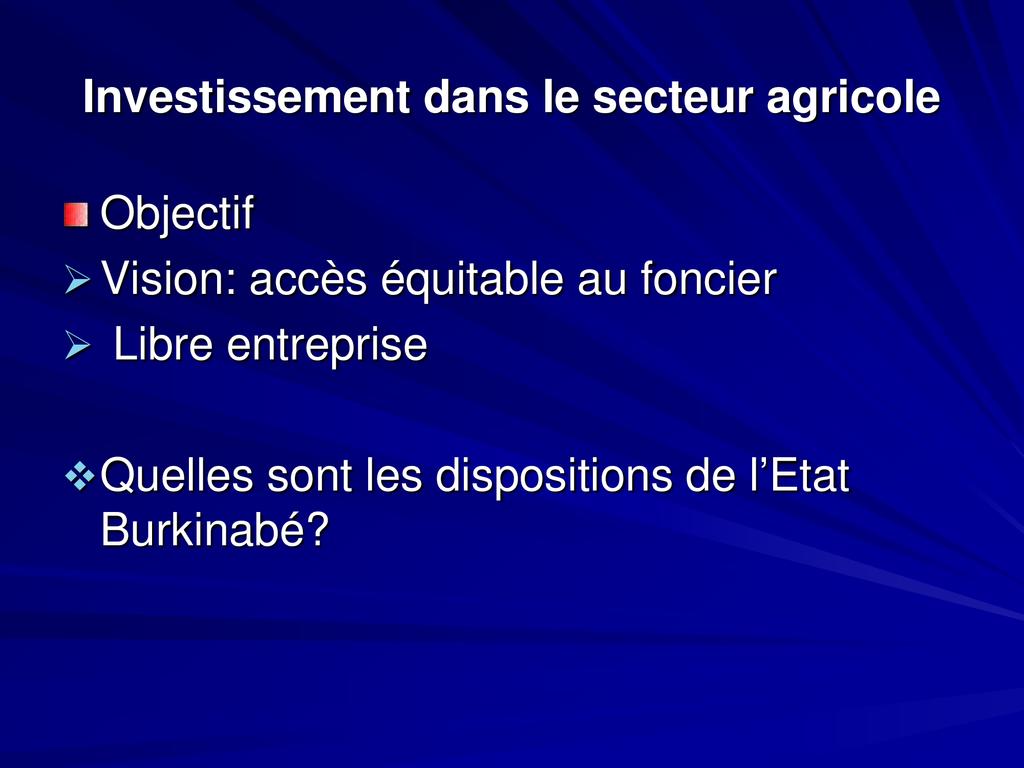 - Le secteur agricole joue un rôle primordial dans le développement socio-économique du Burkina Faso: