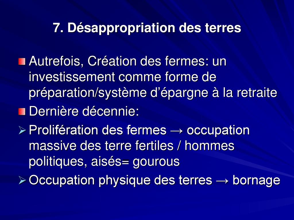 - Seulement 40% des terres cultivables sont exploitées: les cultures vivrières, les cultures de rentes