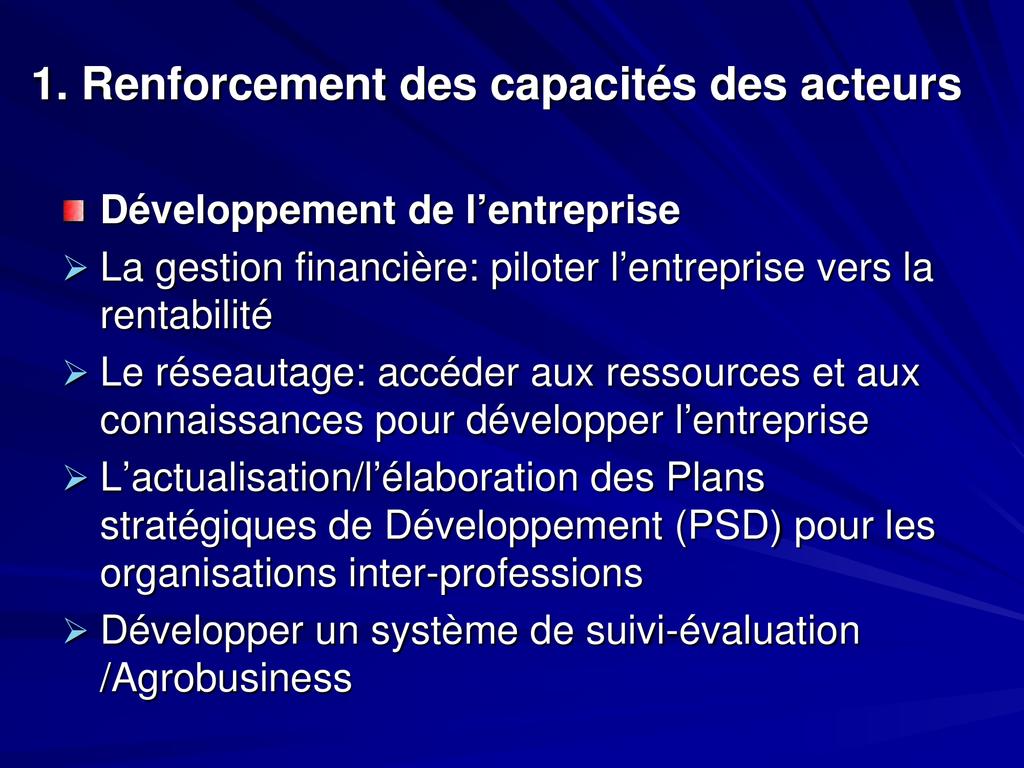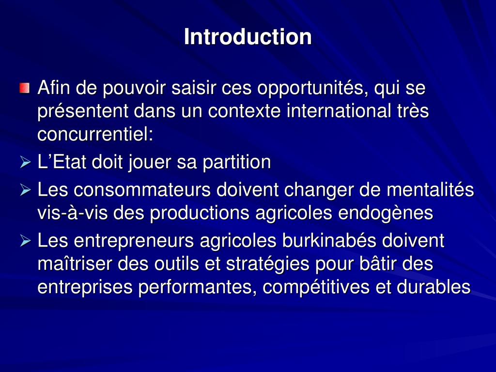 - Afin de pouvoir saisir ces opportunités, qui se présentent dans un contexte international très concurrentiel: