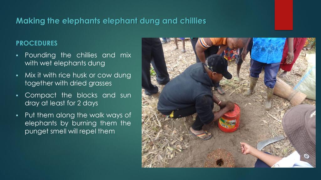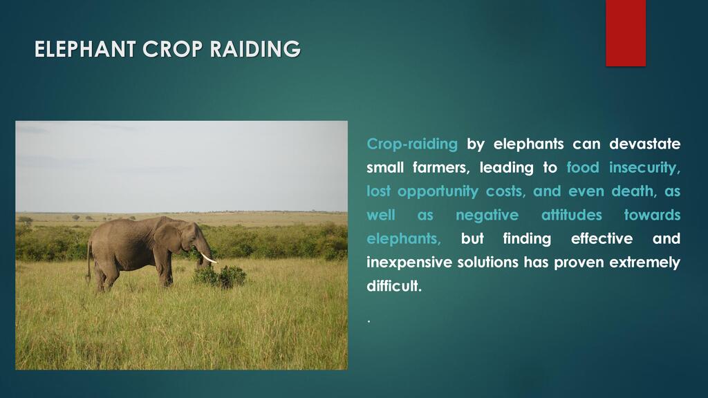 Session: Crop-raiding by elephants can devastate small farmers, leading to food insecurity, lost opportunity costs, and even death, as well as negative attitudes towards elephants, but finding effective and inexpensive solutions has proven extremely difficult. Beehive fences surrounding crops fields with beehives attached to fence posts and strung together with wires may serve as a humane and eco-friendly way to protect crops from elephants. Beehive fences have benefited farmers in southern Tanzania, and projects elsewhere have begun to test them as well, sharing the success story protecting the research seed trails with farmers along the Makangara village in Lindi region from Elephants incursion through Beekeeping But several uncertainties, including their success at a scale that doesn’t just displace the elephants to the first unfenced farm, suggest they should still be used with other techniques as part of a toolkit to reduce human-elephant conflicts.
