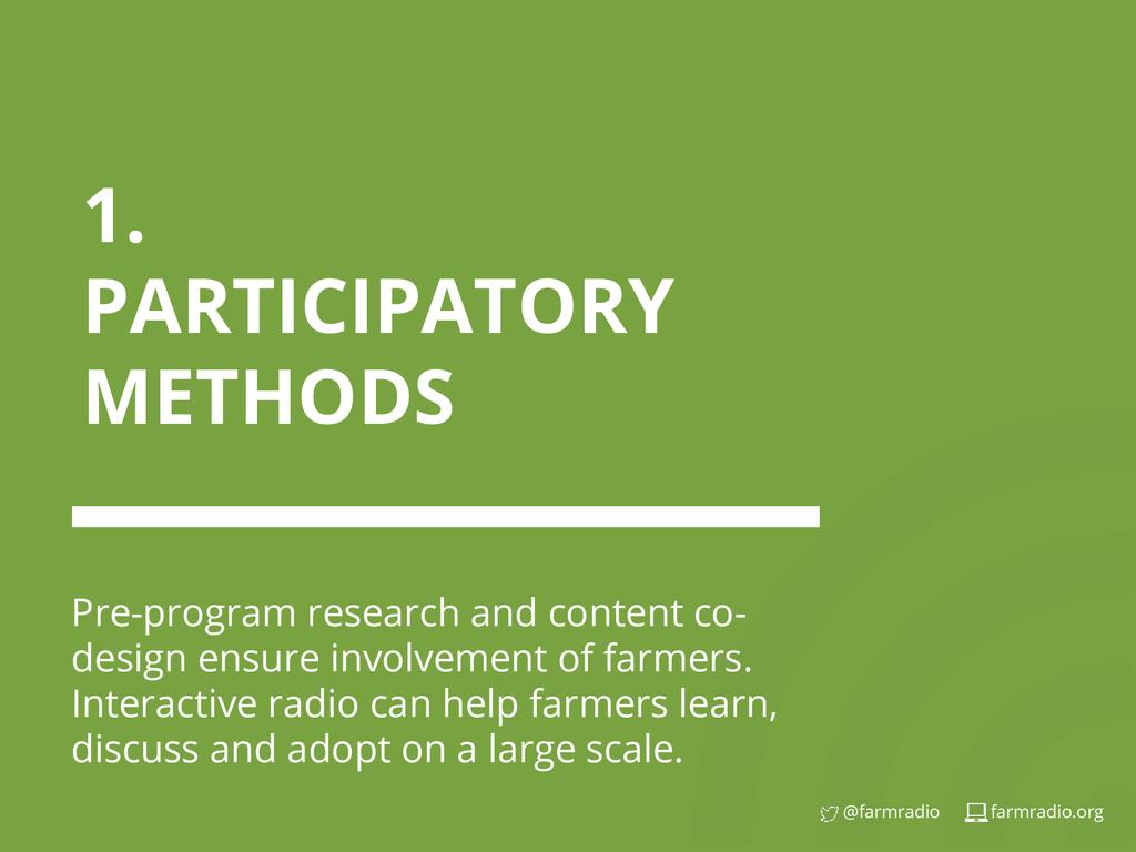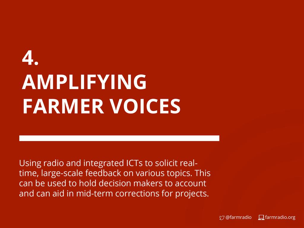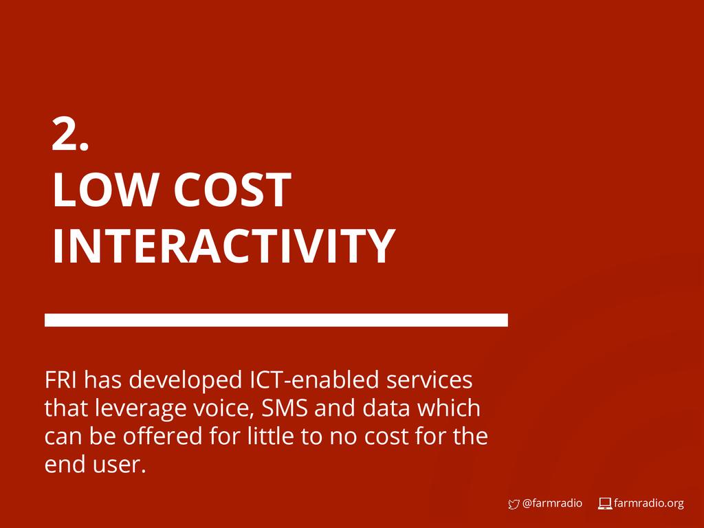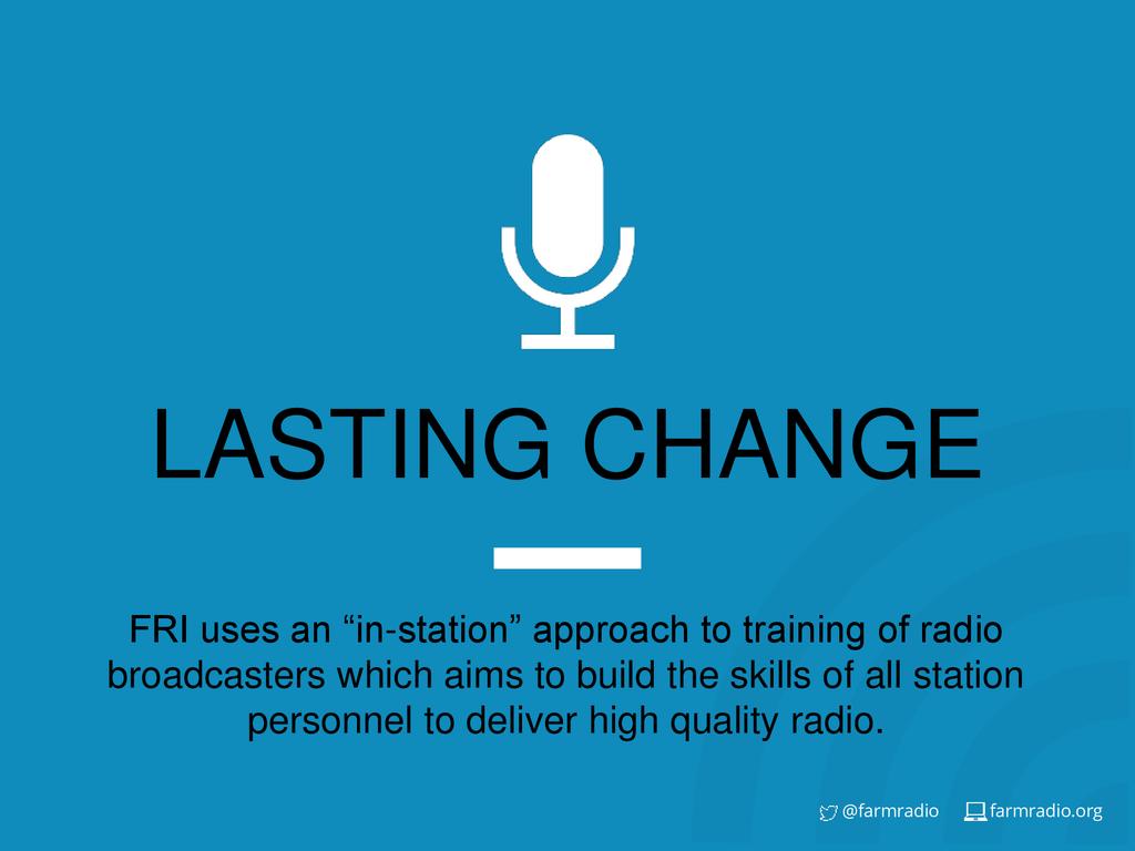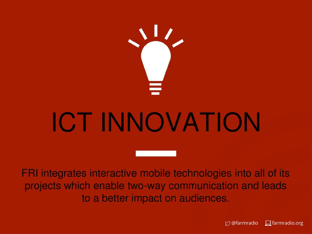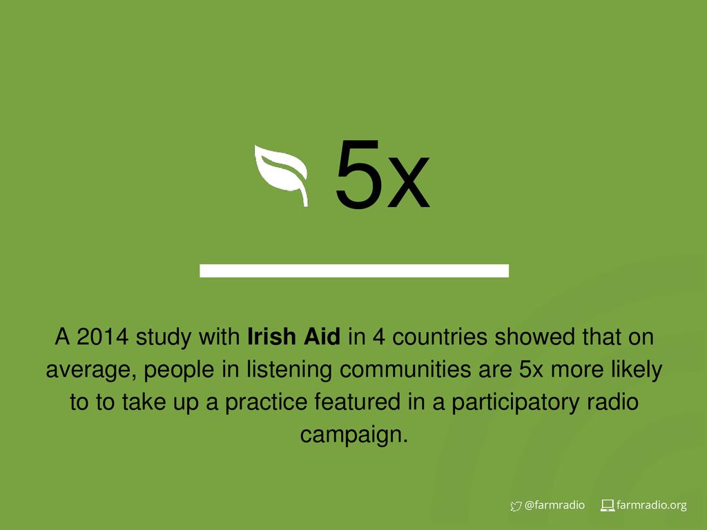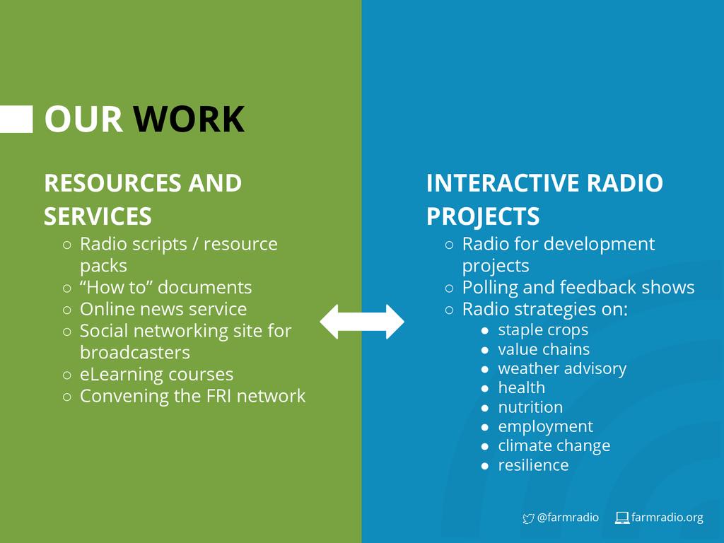 Farm Radio International (FRI), is a Canadian not-for-profit organization at the forefront of using radio combined with other ICTs to increase reach, participation and to give African farming families a voice. We work with local radio stations to develop interactive programs which respond to the information needs of farmers, giving them chance to hear about, discuss and ask questions about improved agricultural techniques. We will present some results from projects in Tanzania, and you will get chance to experience our interactivity methods.