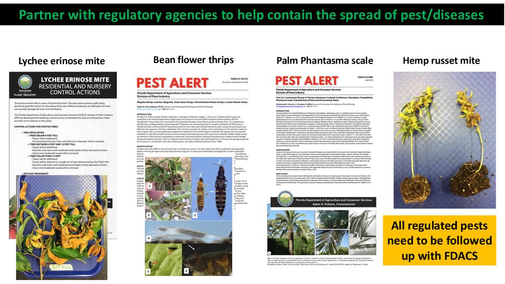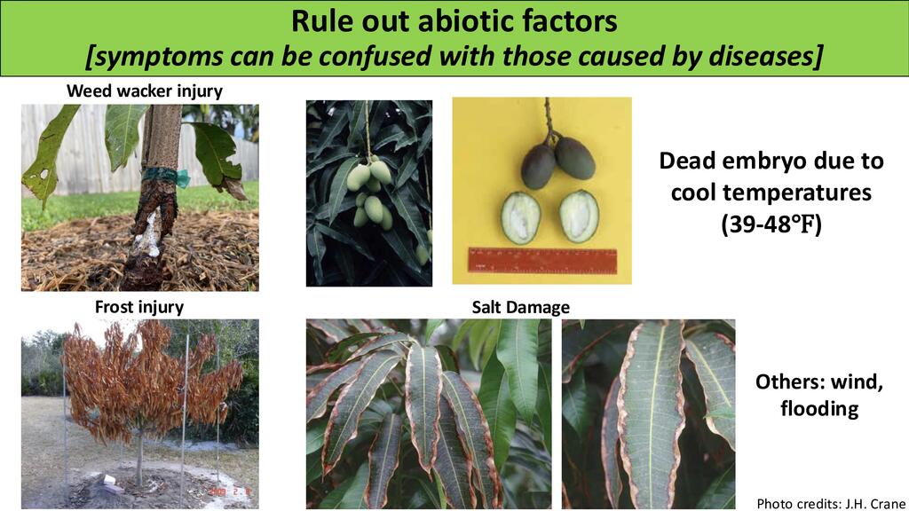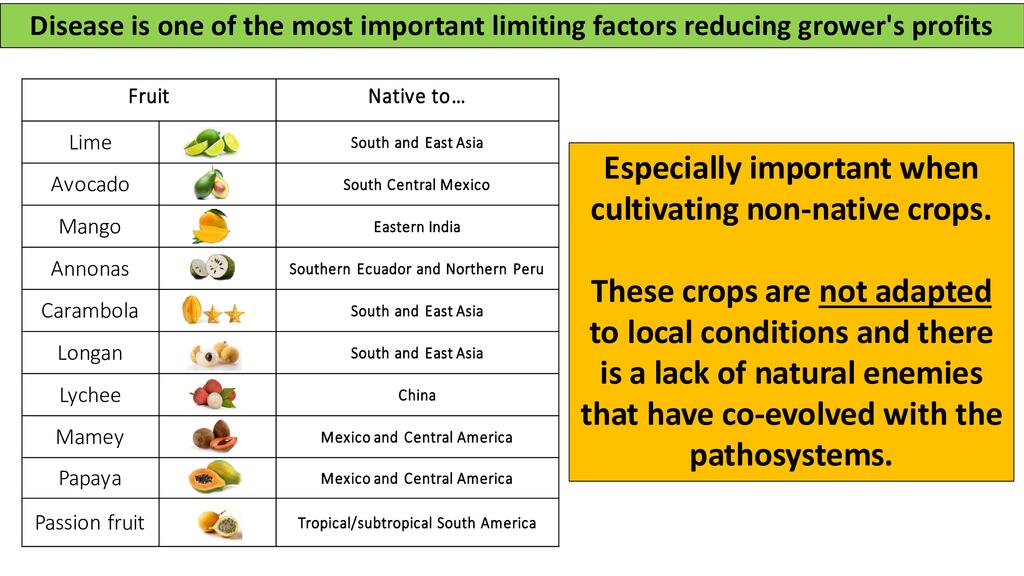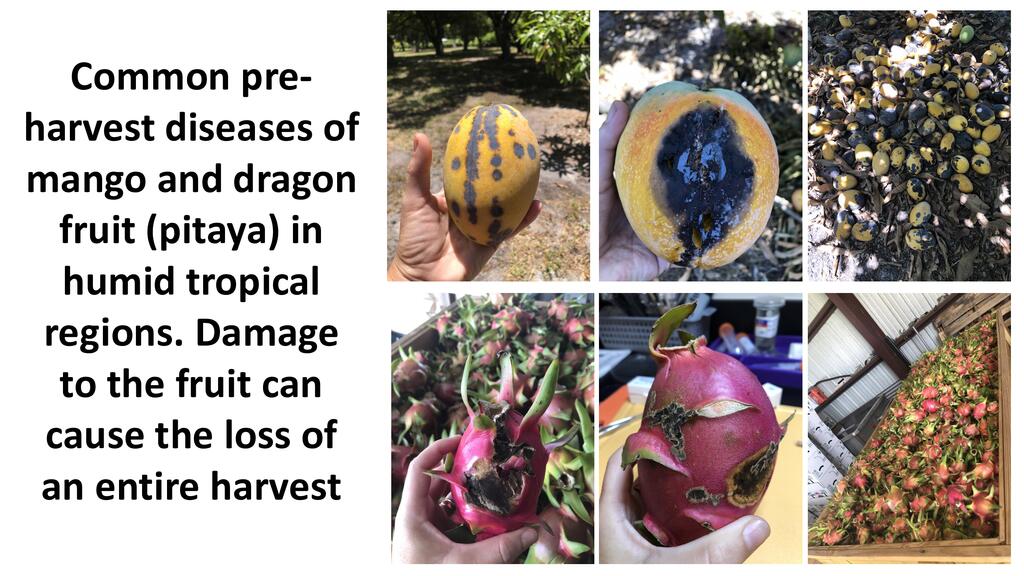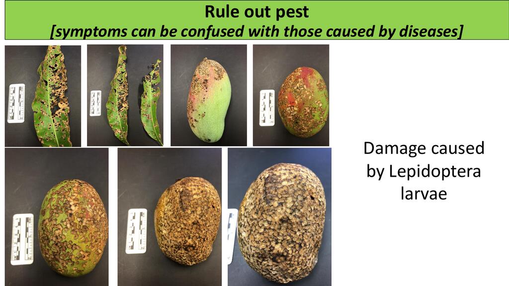 • visual examples of pests and diseases that may be found in tropical fruits and vegetables