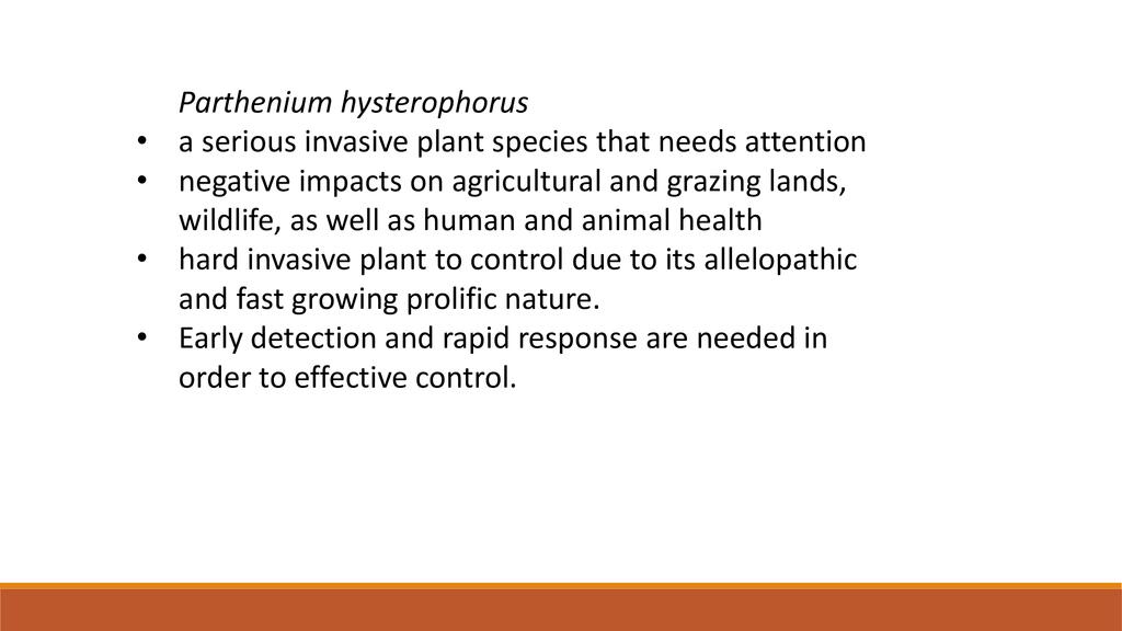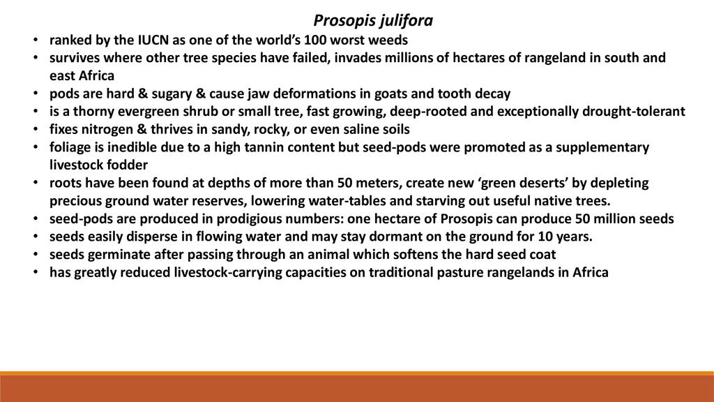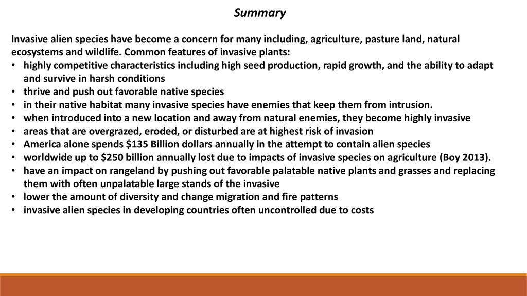 Invasive alien species have become a concern for many including, agriculture, pasture land, natural ecosystems and wildlife.