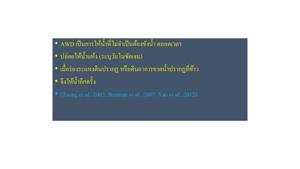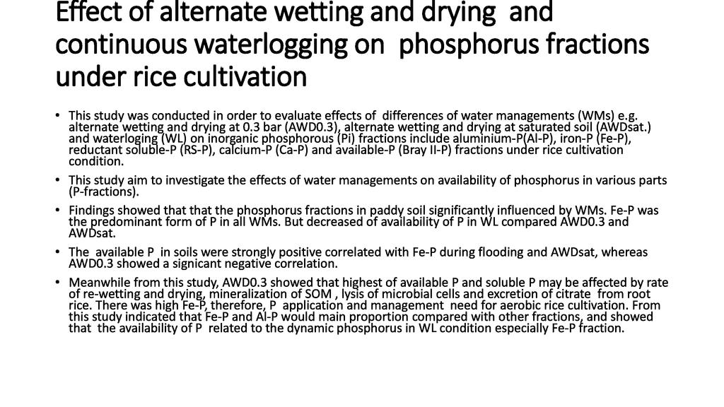 Dr. Suphathida Aumtong from Mae Jo University shared her study on “Reduced Water Rice Cultivation”. Her research has been done to correspond with the expected changes in rice demand, environment, and socioeconomic conditions that affect the productivity and management of paddy soils in intensive rice systems in Asia. Water shortage is also a major problem for farming, so Dr. Suphathida is trying to find the way to productively grow rice while using less water. However, her study is still in the experimental stage. Once it becomes feasible, this technique may become one option for climate adaptation appropriate for Thai farmers.