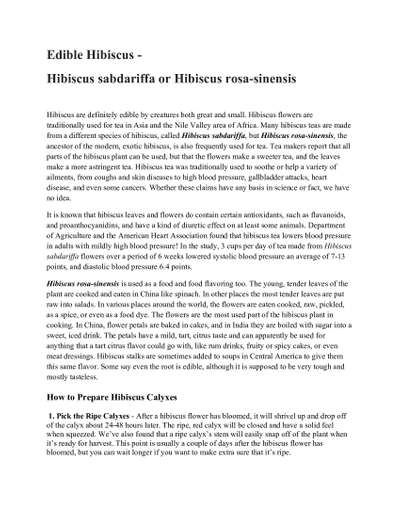Edible Hibiscus - Hibiscus sabdariffa or Hibiscus rosa-sinensis