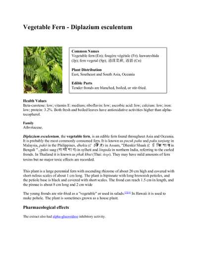 Common Names: Vegetable fern (En); fougère végétale (Fr); kuwareshida (Jp); fern vegetal (Sp); 過溝菜蕨, 過貓 (Cn)