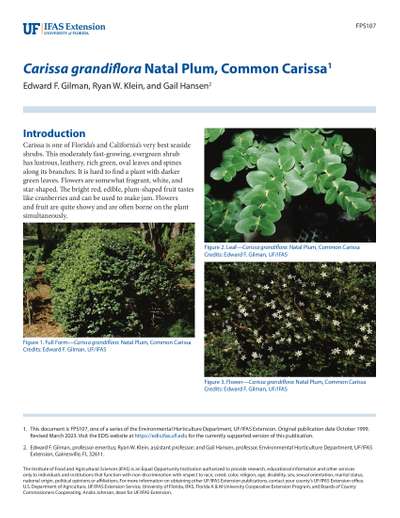 1. This document is FPS107, one of a series of the Environmental Horticulture Department, UF/IFAS Extension. Original publication date October 1999. Revised March 2023. Visit the EDIS website at https://edis.ifas.ufl.edu for the currently supported version of this publication.