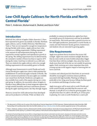 Low-Chill Apple Cultivars for North Florida and North Central Florida