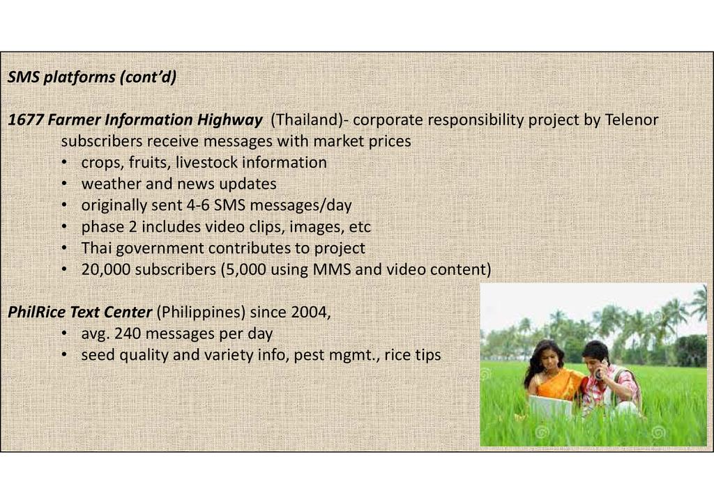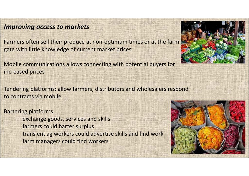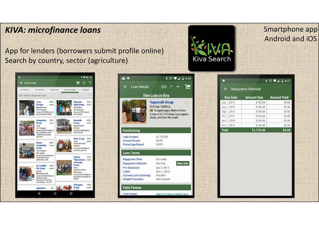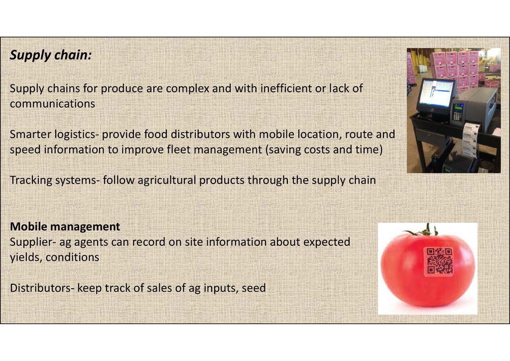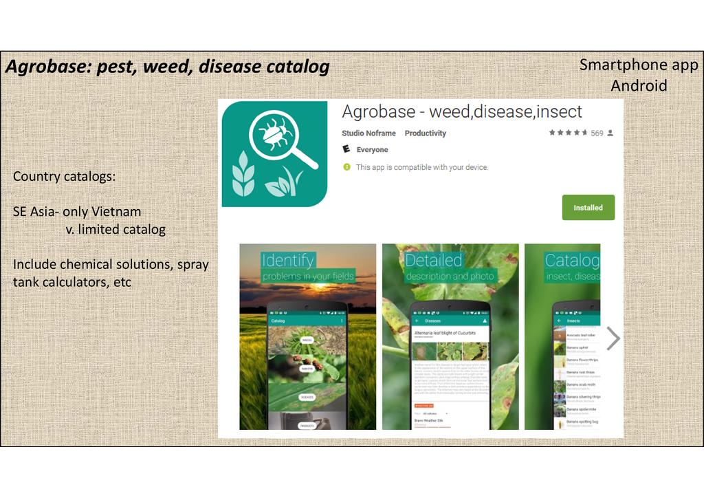 As mobile technologies improve and expand rapidly into rural areas, several types of applications have been developed to help farmers access up-to-date agricultural information, banking and lending platforms, and increase efficiencies in the agriculture supply chain. We will discuss a variety of proposed mobile systems for agriculture and look at several applications currently being adopted by farmers in Asia and Africa. Finally, we will investigate specific smartphone apps for Android and iOS that are designed to provide crop nutrient information, soil, weed, pest and disease ID, weather forecasts, photo logging, canopy cover analyses, and geolocation.