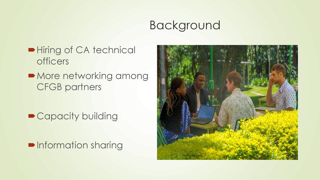 Presenter - Putso Nyathi is a Conservation Agriculture Technical Officer for Southern Africa with MCC/CFGB supporting CFGB funded projects. She works from Pretoria, South Africa and is Zimbabwean. Putso holds a M.S. in Agriculture and Development, a Post Graduate Diploma in Project Planning and Management and a B.S. degree in Agriculture. She has 15 years of experience working with smallholder farmers in both research and development organizations. She served for five years with the International Crops Research Institute for the Semi-Arid Areas (ICRISAT) in Zimbabwe. Putso also worked at CNFA Zimbabwe’s USAID-funded project and she was responsible for technical training on Conservation Agriculture and linking farmers to markets. Prior to this she worked as a food security officer with World Vision and as a Training and Coordination Specialist for the Agricultural Extension Service in Zimbabwe under the