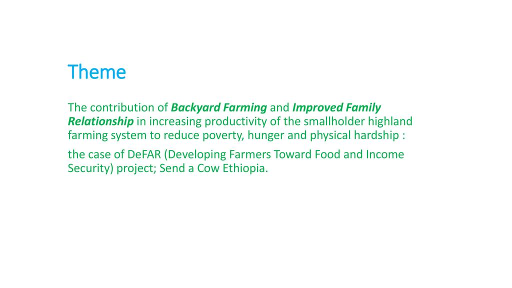 Presenter: Aklilu Dogisso is an Ethiopian with a BSc degree in Agriculture from the University of Addis Ababa - Haramaya Agricultural College, and MA degree in Rural Social Development from the University of Reading in the UK. He has worked at SAC for more than 9 year as Country Director and is responsible for policy and strategy development, networking and relationship building, fund raising and financial controls, capacity building and programme effectiveness, image building and programme expansion.
