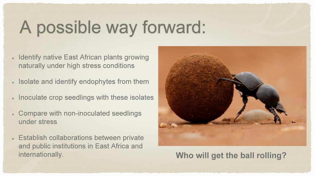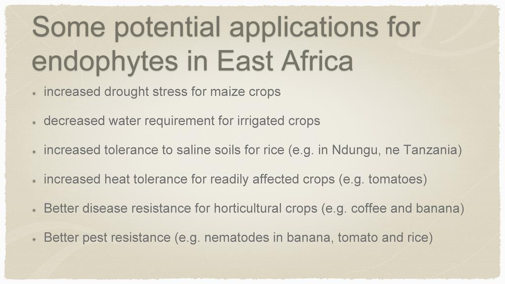 Session: This presentation will focus on a review of research and development with endophyte symbiosis and the potential for plant improvement in East Africa.