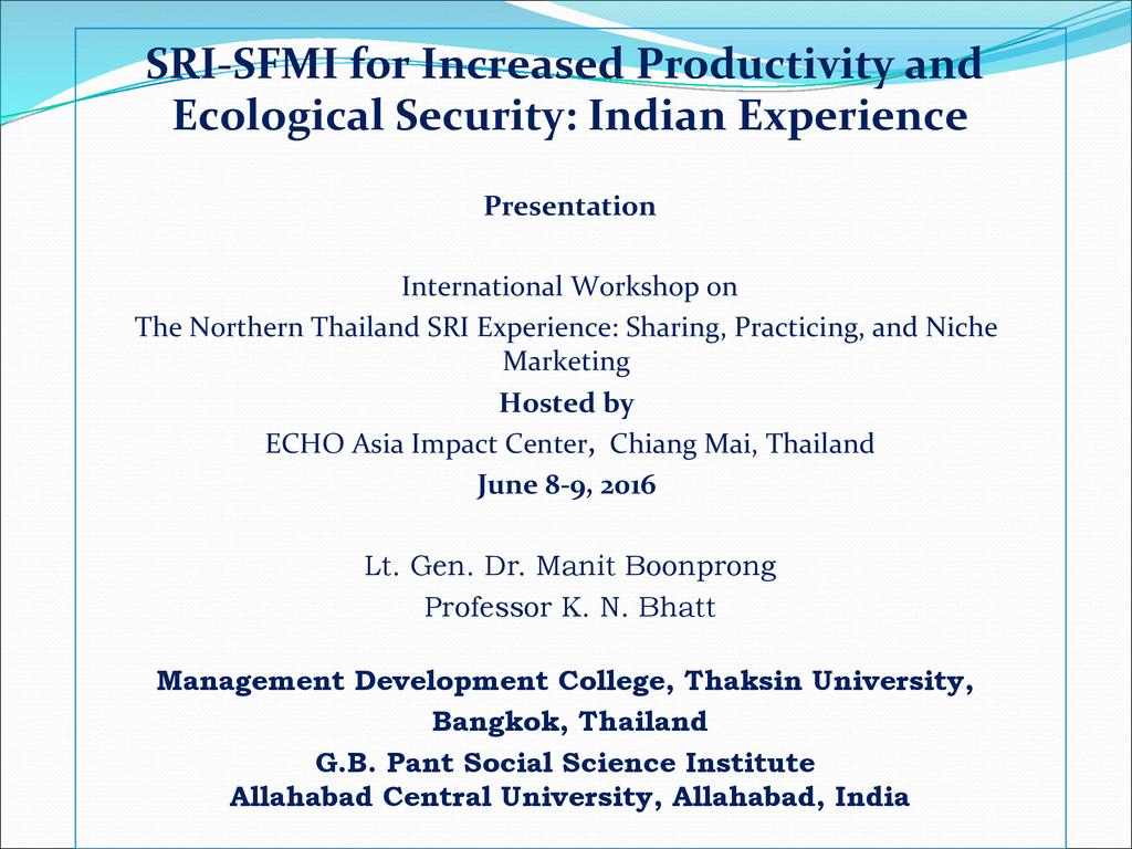 Event: ECHO Asia SRI Workshop June 8 - 9, 2016