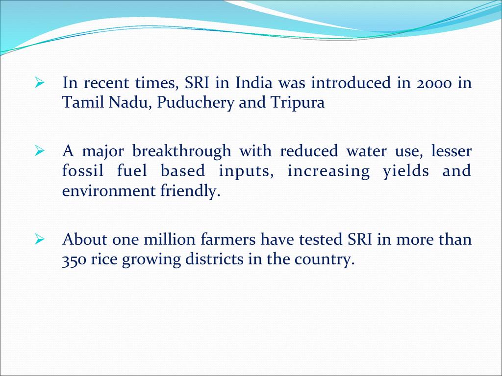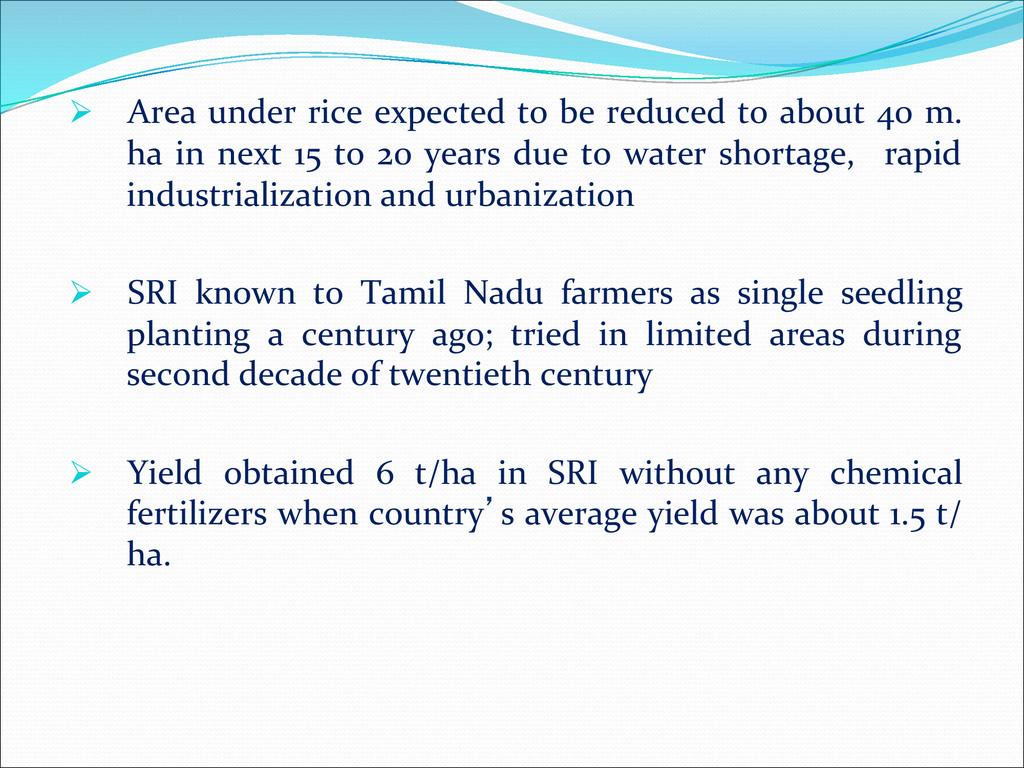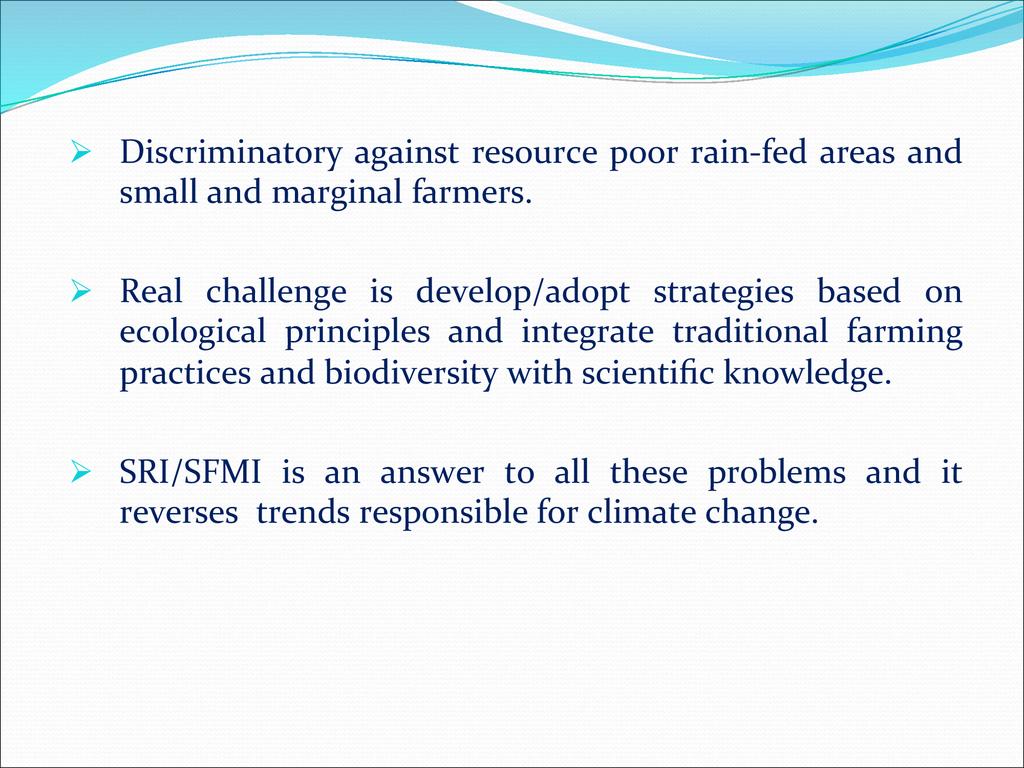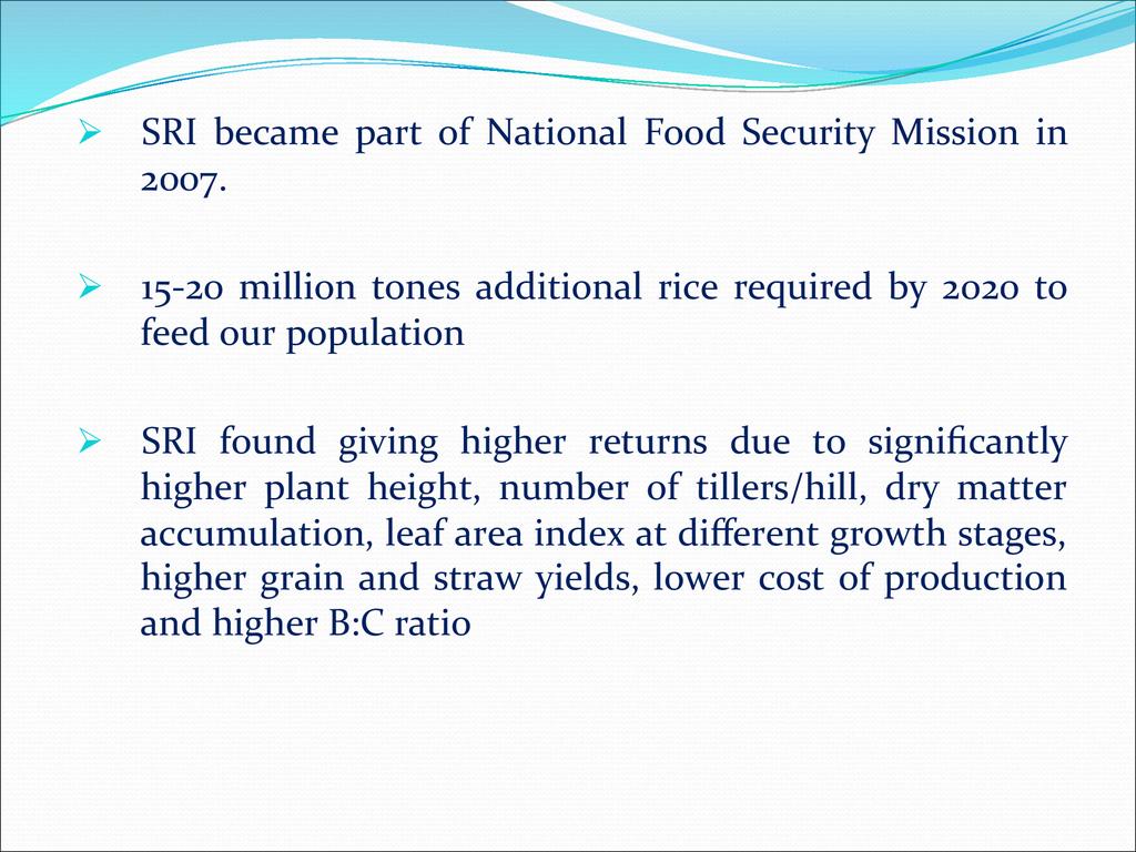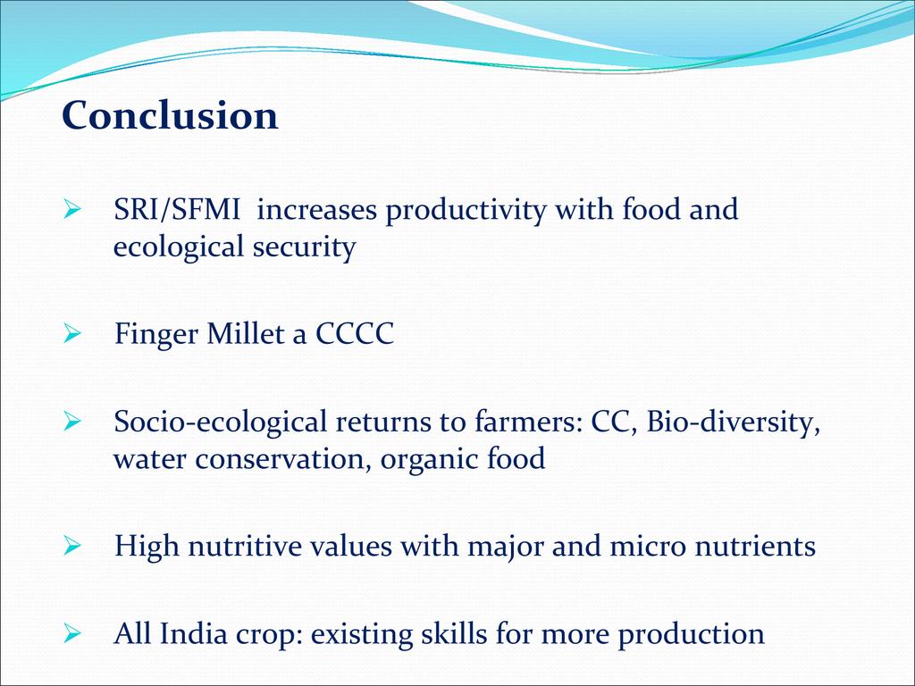 Explore alternative ways of resource efficient System of Rice Intensification (SRI)/ System of Finger  Millet Intensification (SFMI) for paddy/finger millet cultivation in comparison to existing resource intensive conventional method.