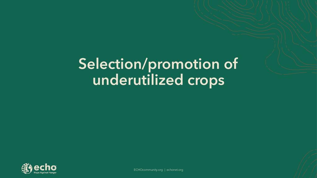 - Select / Promtion of Underutilized Crops