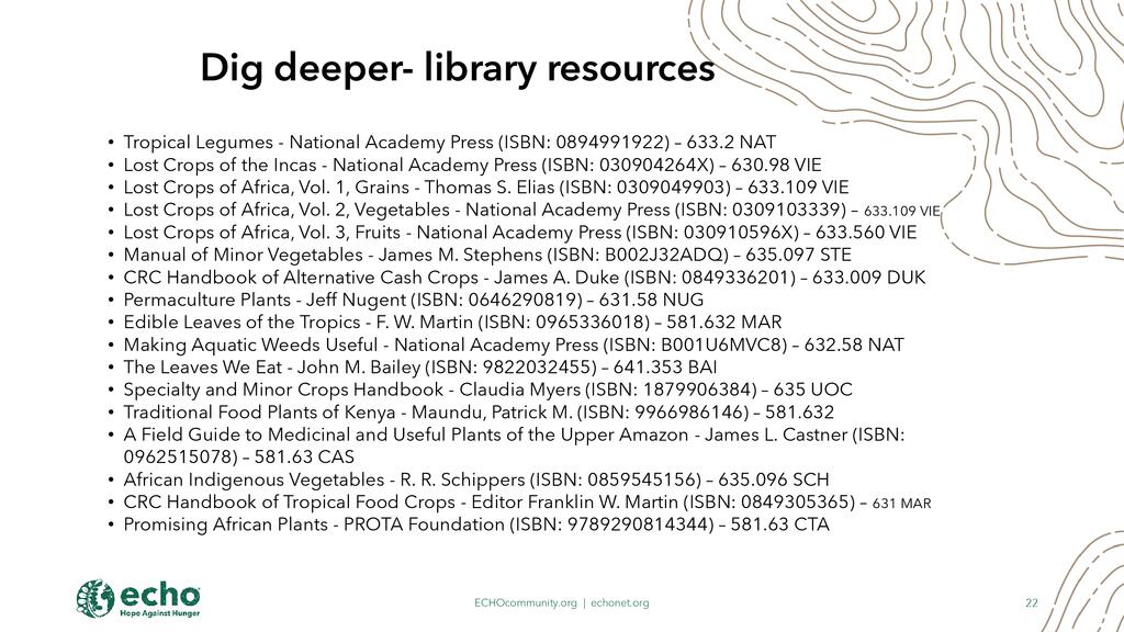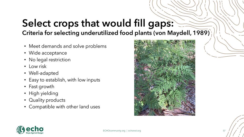 - Perennial Greens and Inderutilized Tropical Crops