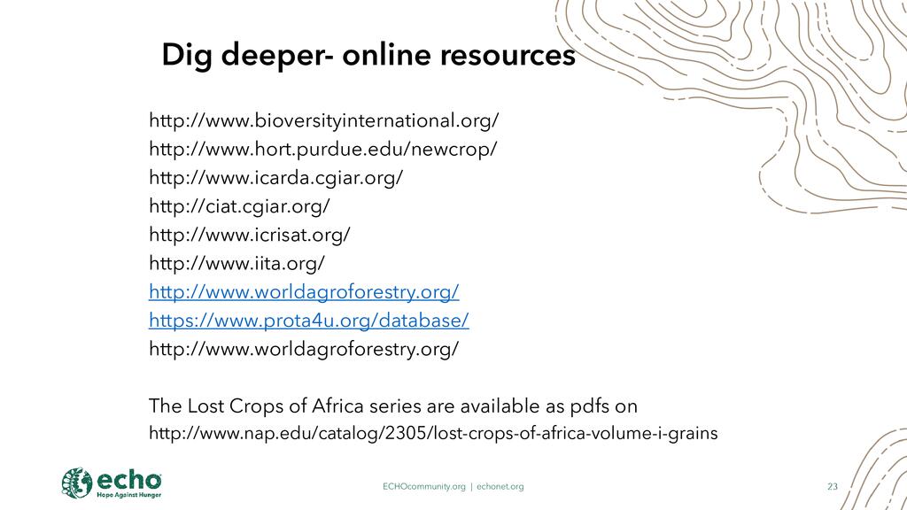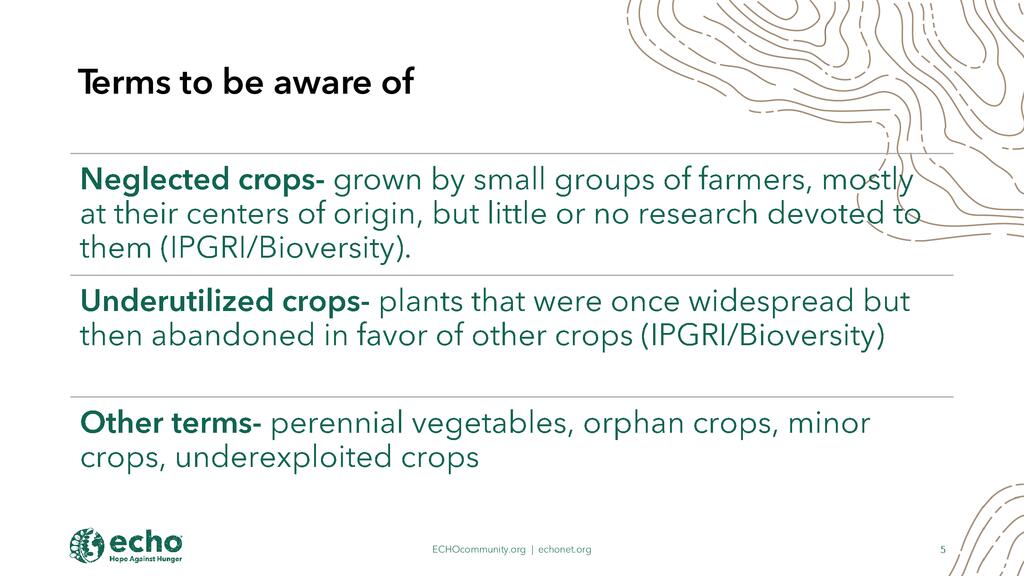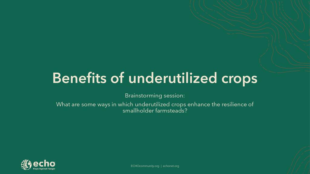 - Benefits of Underutilized Crops