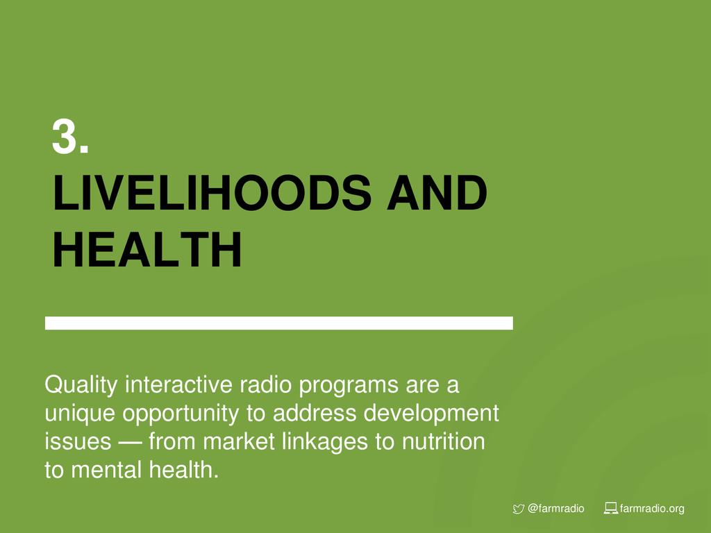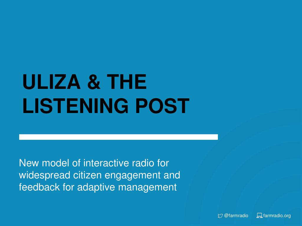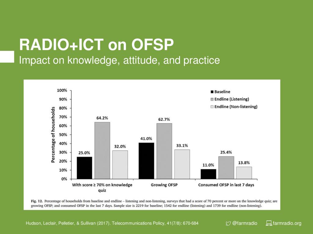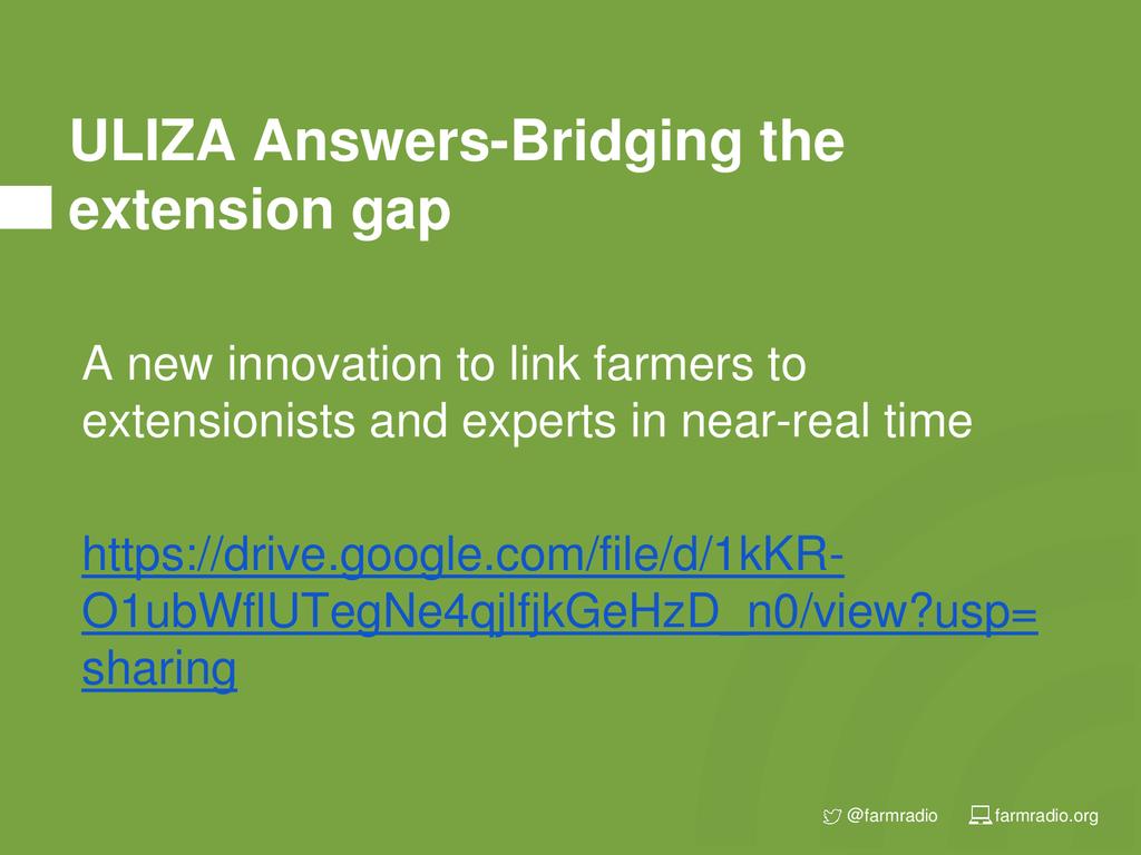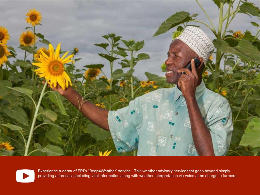 Session: ICTs can bridge the distance between farmers and extension officers through radio combined with mobile phones. Agricultural extension officers are an invaluable resource for farmers looking to increase their yields. Extension officers can provide tips on combating a new disease, or advice on planting and post-harvest practices. Unfortunately, farmers living in remote areas infrequently interact with agricultural extension officers. However, they can use ICTs such as beep-to-vote, as well as participatory community video, to engage farmers and provide them with information they need. This innovative approach will combine radio and video to reach listening groups in select regions and farmers with the information they need to increase their yield.