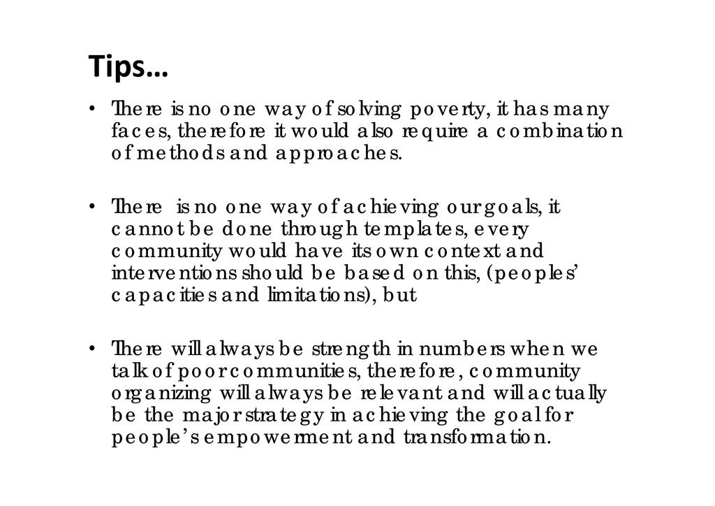 Abstract: In every organization, both non-governmental and local government, there are needs to have background and knowledge related to community organization. This presentation will discuss methods of how to know and assess people’s capabilities in order to find ways to make their socio-economic lives better. During this workshop, participants will learn some basic know-how in organizing communities. Different group activities will be presented.