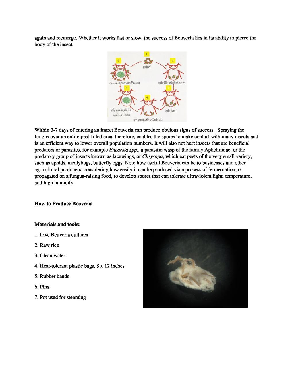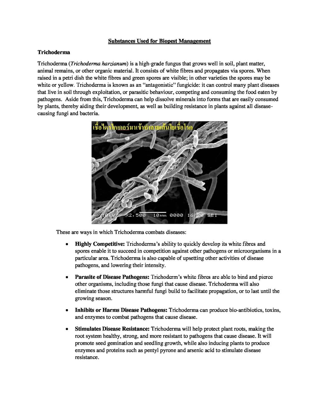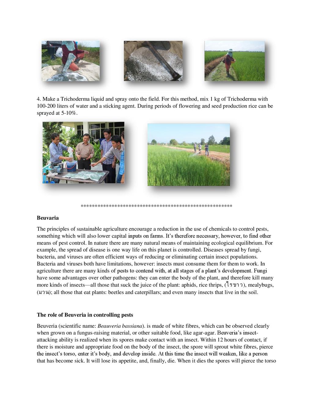 An overview of the workshop topics including integrated pest management, natural herbicides, Beuveria, Trichoderma, etc. Translated from Thai to English.