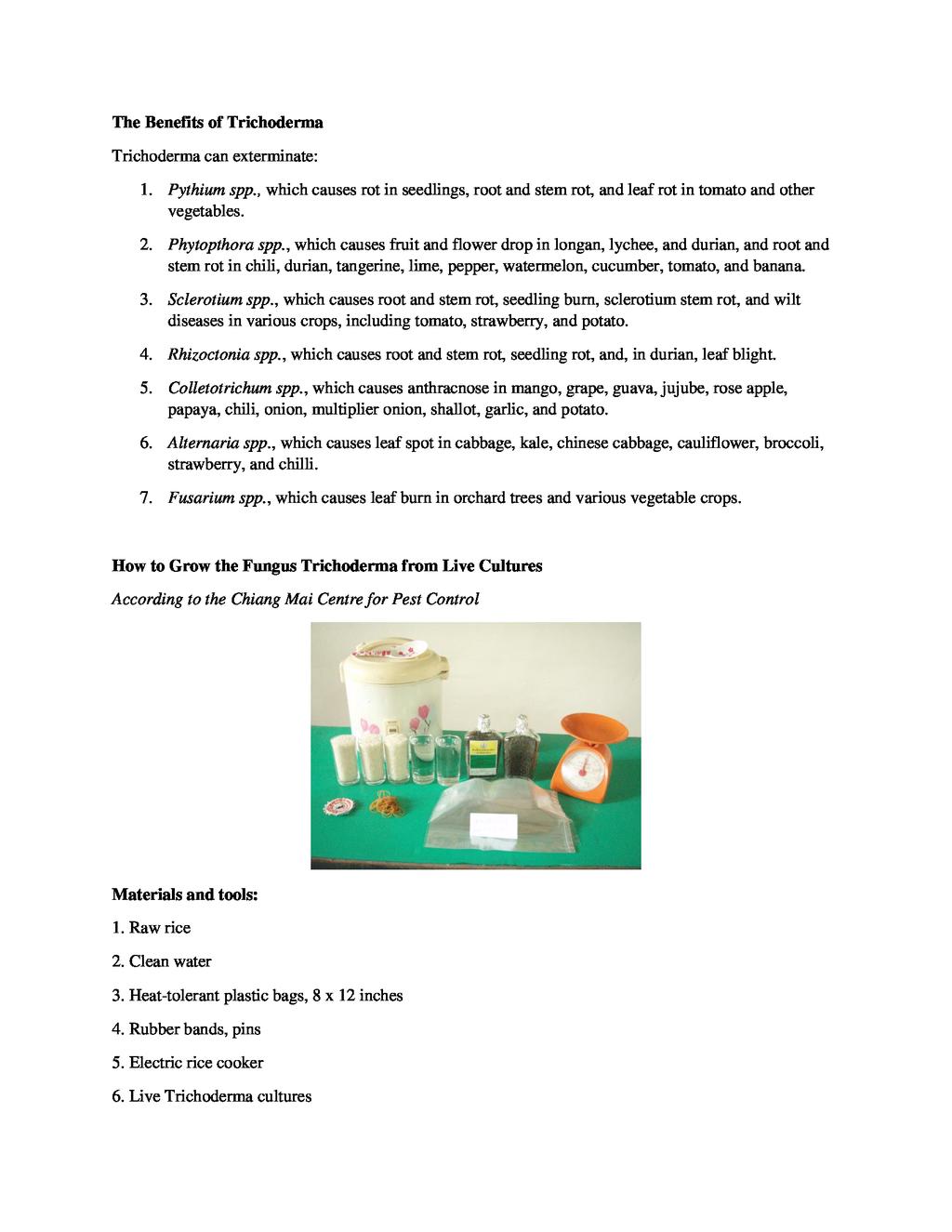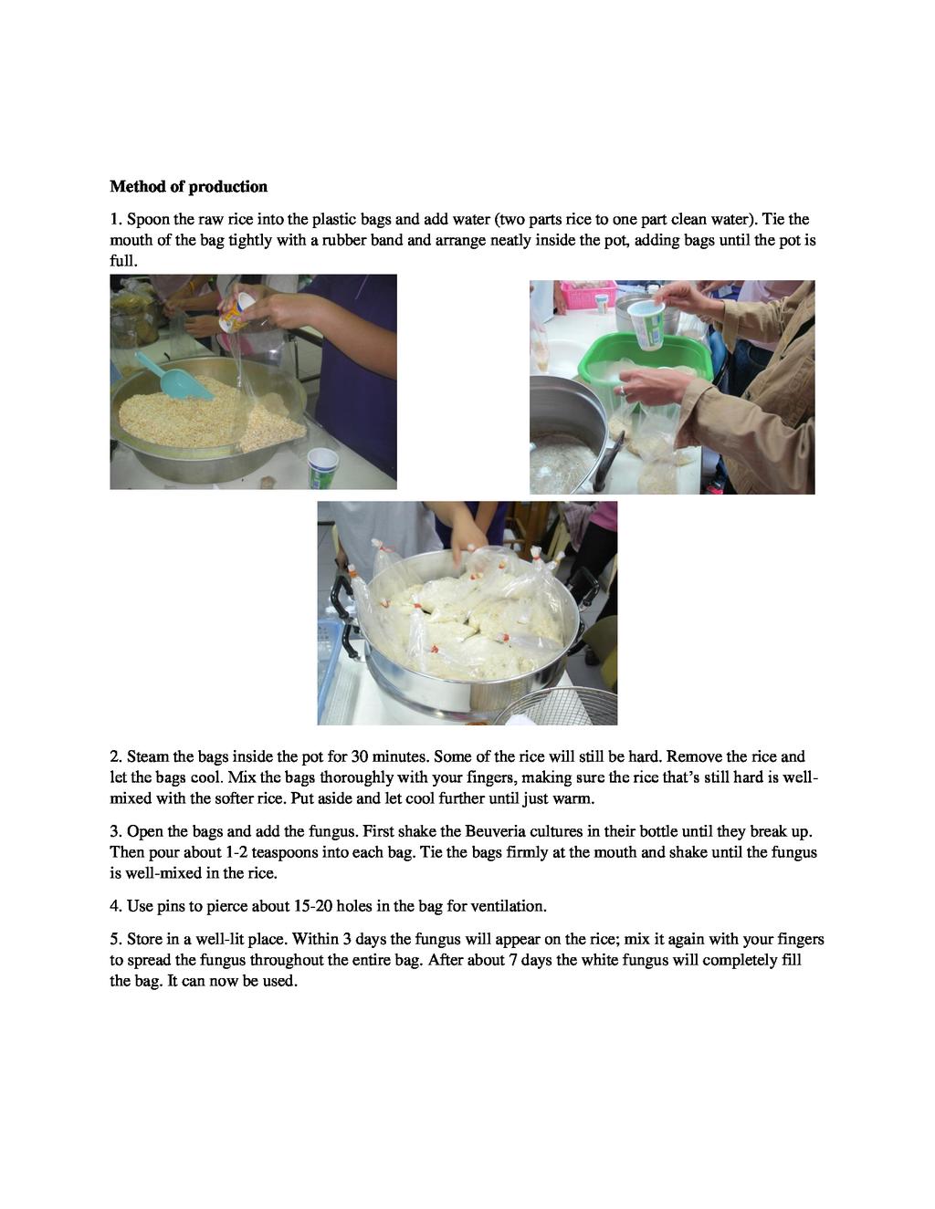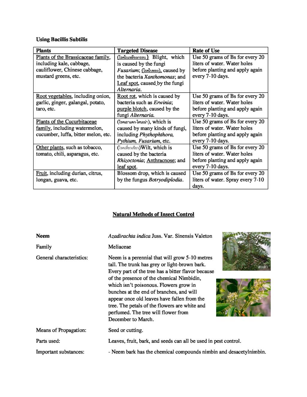 An overview of the workshop topics including integrated pest management, natural herbicides, Beuveria, Trichoderma, etc. Translated from Thai to English.