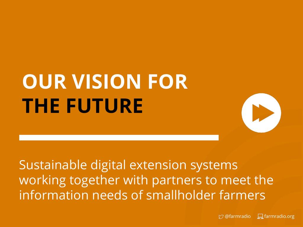 Session: ICTs can bridge the distance between farmers and extension officers through radio combined with mobile phones. Agricultural extension officers are an invaluable resource for farmers looking to increase their yields. Extension officers can provide tips on combating a new disease, or advice on planting and post-harvest practices. Unfortunately, farmers living in remote areas infrequently interact with agricultural extension officers. However, they can use ICTs such as beep-to-vote, as well as participatory community video, to engage farmers and provide them with information they need. This innovative approach will combine radio and video to reach listening groups in select regions and farmers with the information they need to increase their yield.