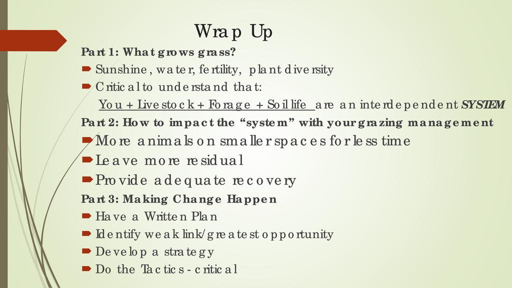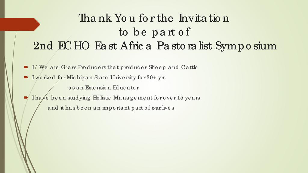 Session: This session shares about soil health and grazing based on some recent research done on our farm. While the Michigan environment is very different than East Africa, like comparing oceans and deserts, the idea that plants get energy from the sun, share that bounty with the microbes in the soil, and then the microbes provide nutrients to increase plant growth is the same everywhere. Given how important water/rain is, what can we do with our grazing to catch and hold more water? The talk will also feature the Holistic Management organization and its programs in the US. This is relevant because a lot of people like Holistic Management ideas / grazing but the uptake by people on the land has lagged. How can we take the principles of Holistic Management and package the principles unchanged in ways that people can see the benefits and then make changes in what may be centuries old ways of doing things? Change is never easy.