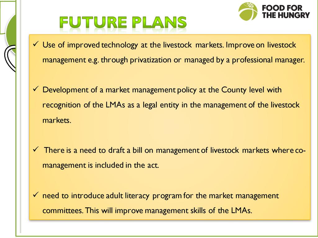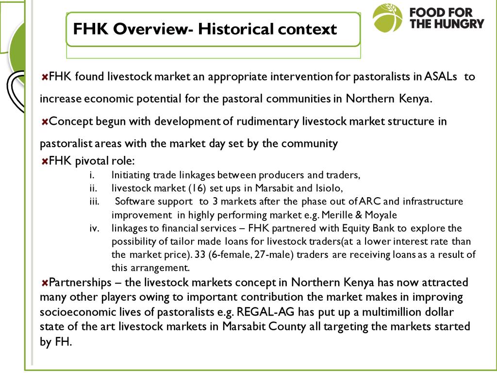 Session: Livestock is the main source of livelihoods for pastoralist in Marsabit County with 80% of the population directly depending on them. Food for the hungry supported and established 13 livestock markets in Marsabit. The markets provided great platform where herders, traders, government and private sector interacted for mutual benefit of all parties. It is a connector and acts as podium for peace, economic access and linkages. Food for the Hungry, Kenya have been promoting livestock markets & linkages to financial services for pastoralists . Diida Karaiyu will share their methods, successes, and challenges.