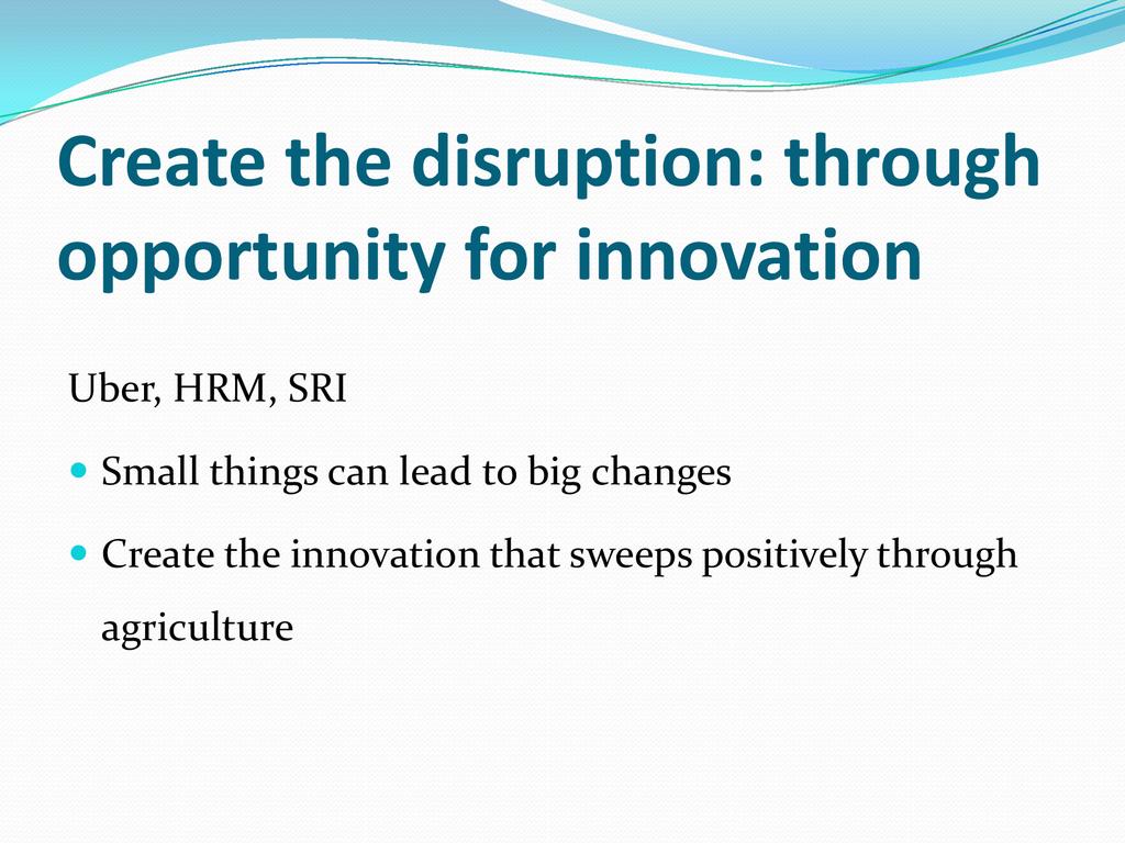 Are you someone who plans?  Have you ever had your plans disrupted by the unexpected – farmer or family change, community change, government change, or disaster?  How do you feel about change and disruption – is it a threat or an opportunity?  Let’s explore together how disruption and even disaster can lead to positive change for farmers and communities.  Let’s look together at possibilities for how you can engage in the face of disruption and leverage it for positive development.