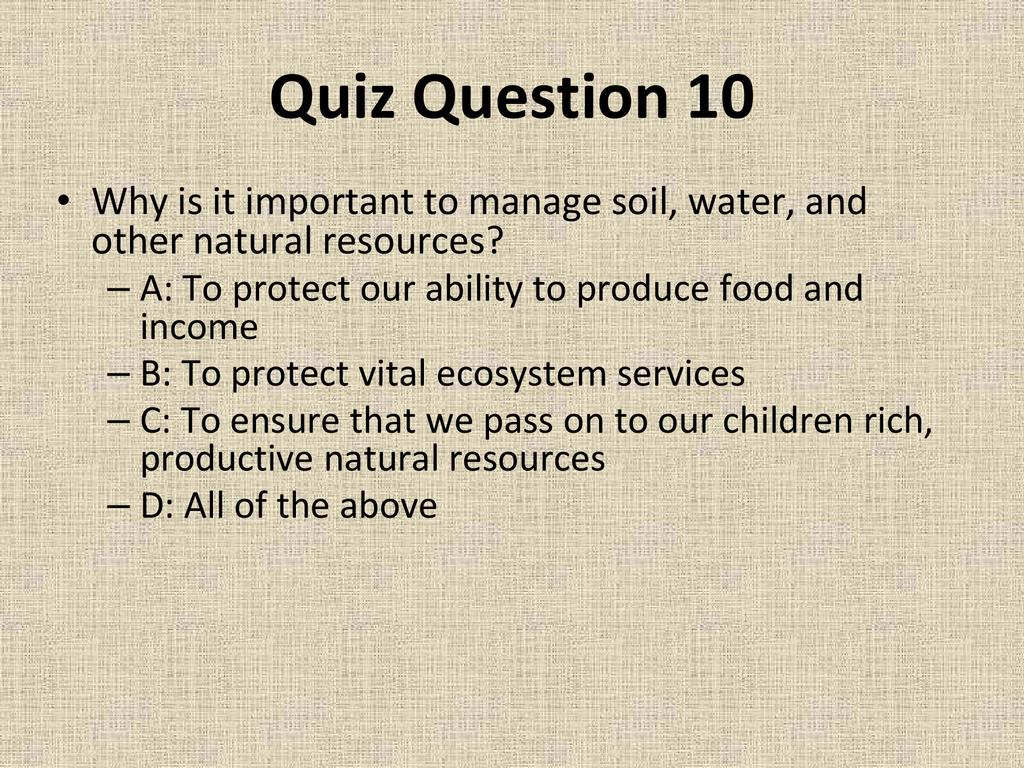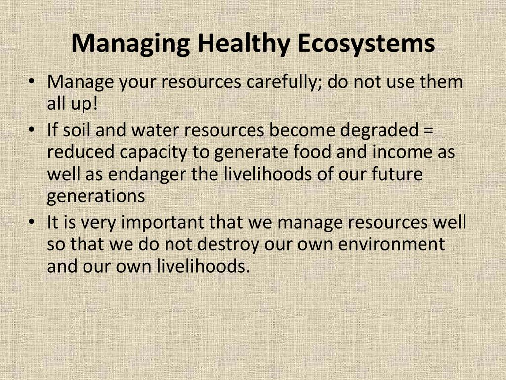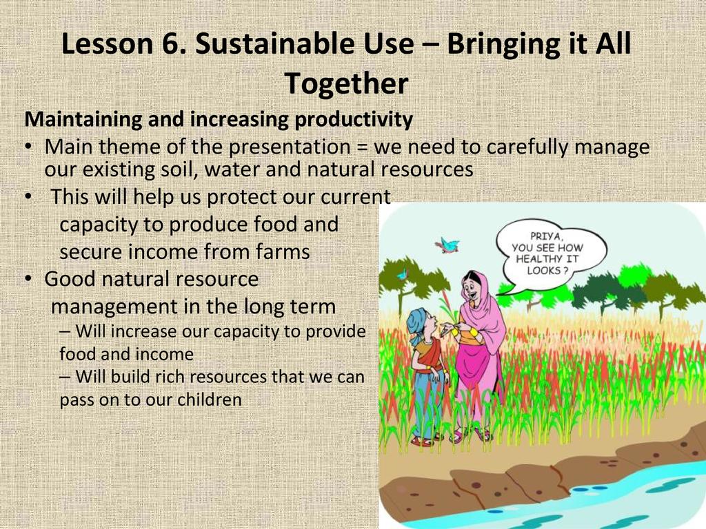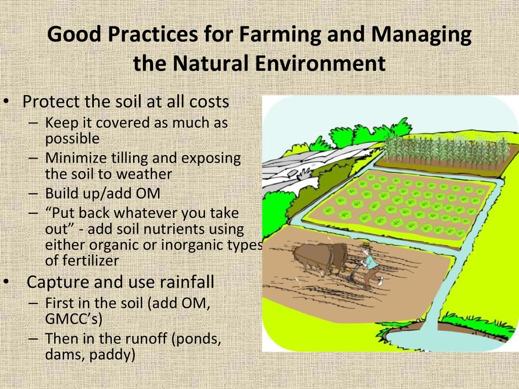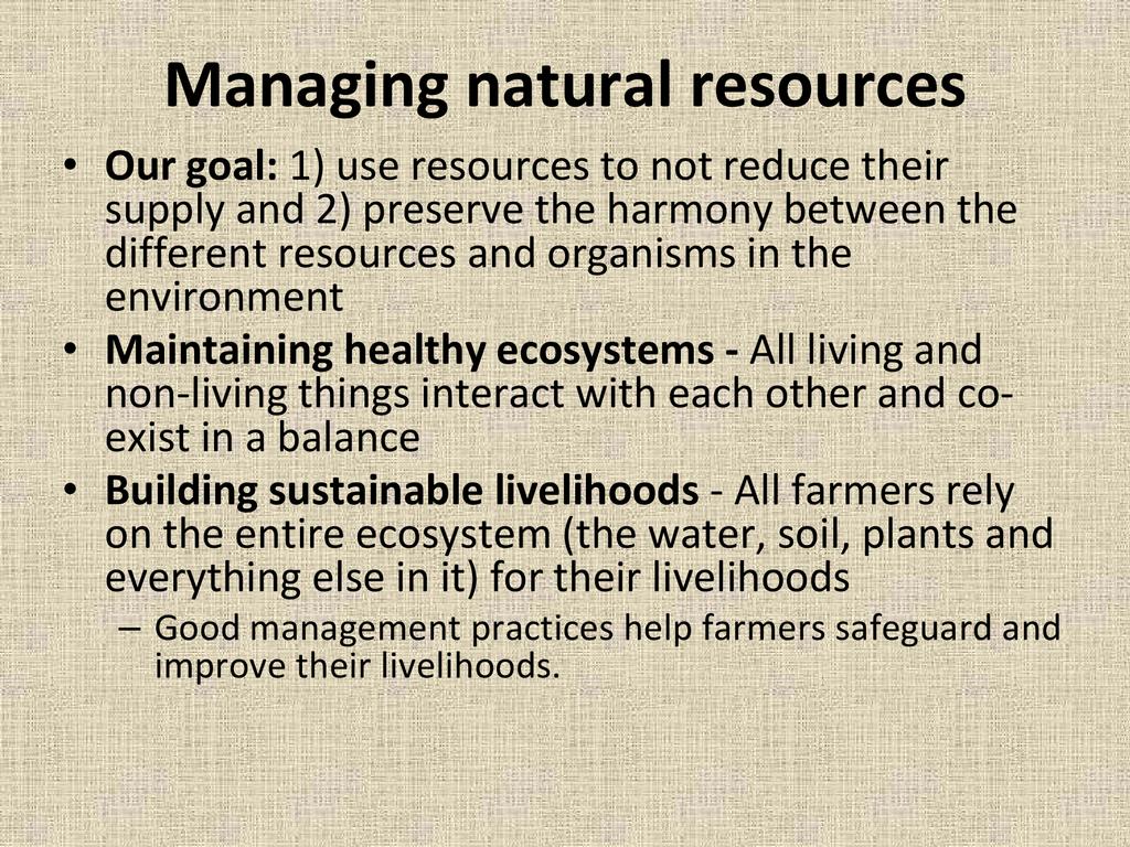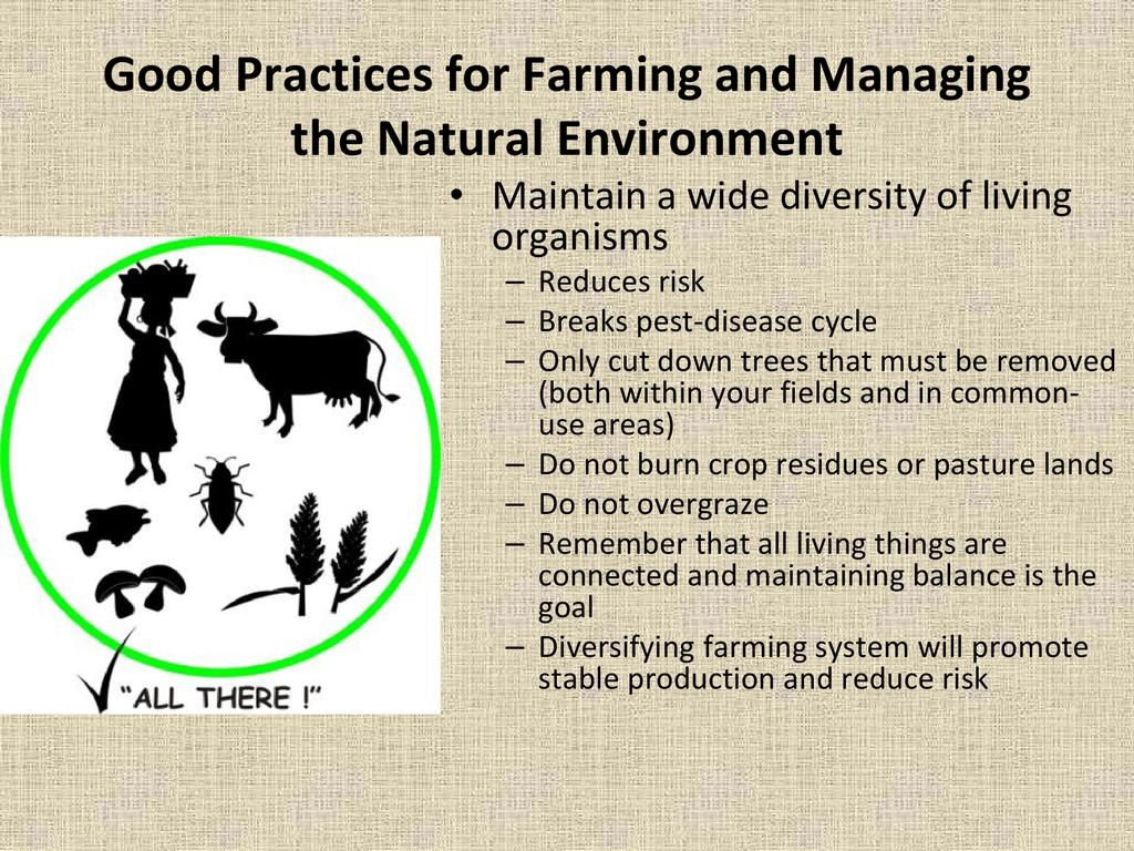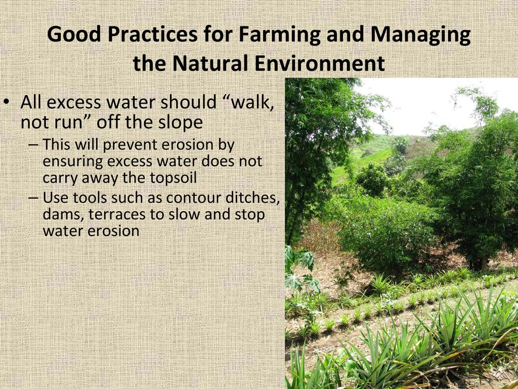 An overview of natural resource management and why it is important to both agriculture and community development, as well as methods for incorporating natural resource management in your project or on your farm.