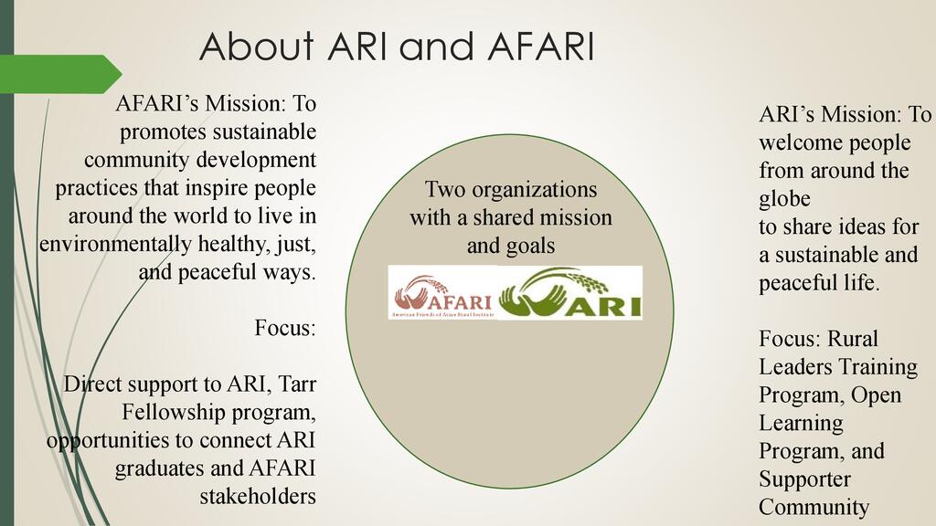 Session : AFARI community-based learning rooted in agriculture integrates foodlife, education, climate action, and organizational resilience to contribute towards a peaceful world. Learn about Asian missions through AFARI.