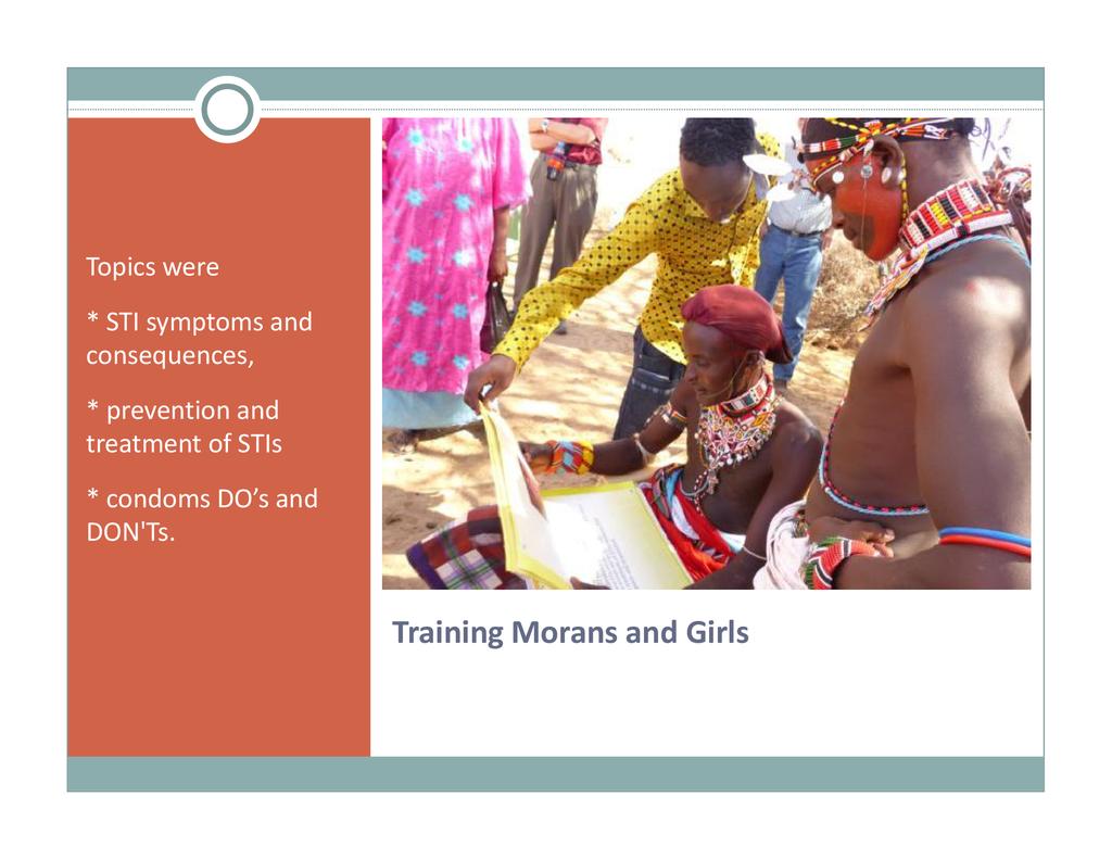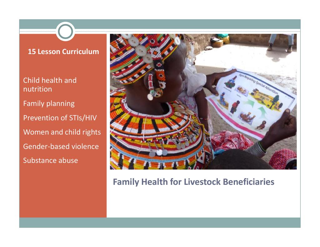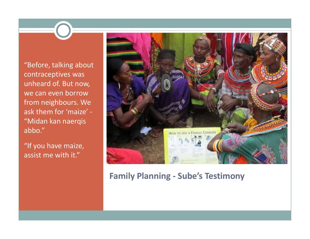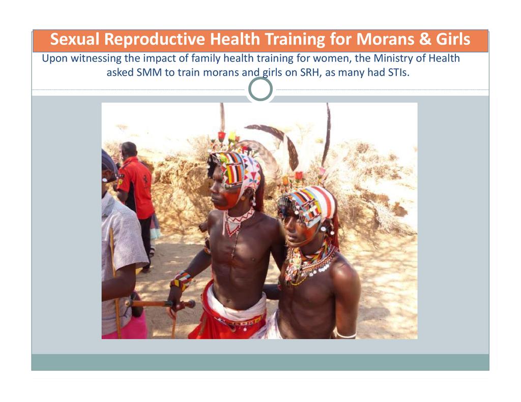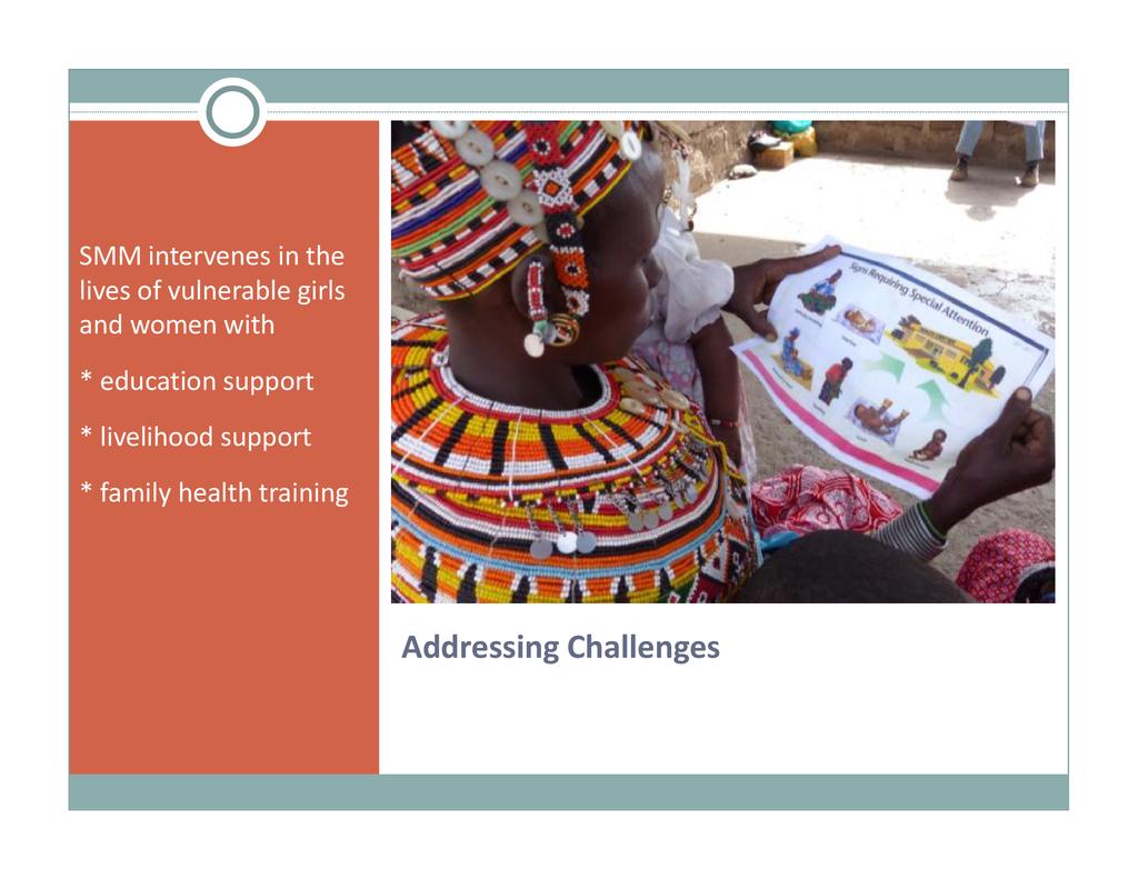 Session: Sauti Moja Marsabit provides livestock to vulnerable female-headed households (widows and single pastoralist mothers) which contribute to food security. We also provide young mothers who have been chased from school due to pregnancy with an opportunity to pursue an education that will enable them to support their child. This session describes our complementary family health project that empowers these marginalized pastoralist women and girls. They receive training in family planning, birth control, child health and nutrition, prevention of STIs, gender-based violence, women and child rights, child protection, life skills and decision-making, etc. As such, these womenare able to manage family health better and become a public health resource in remote communities.