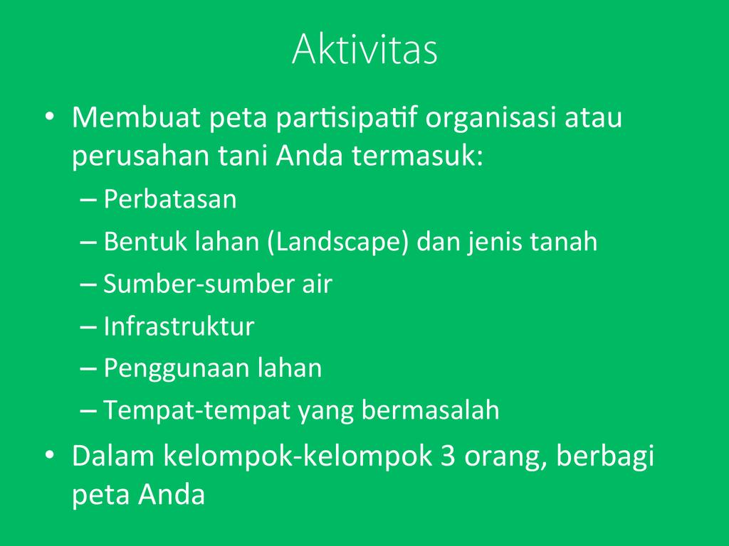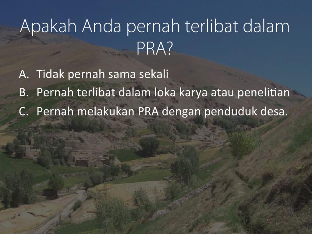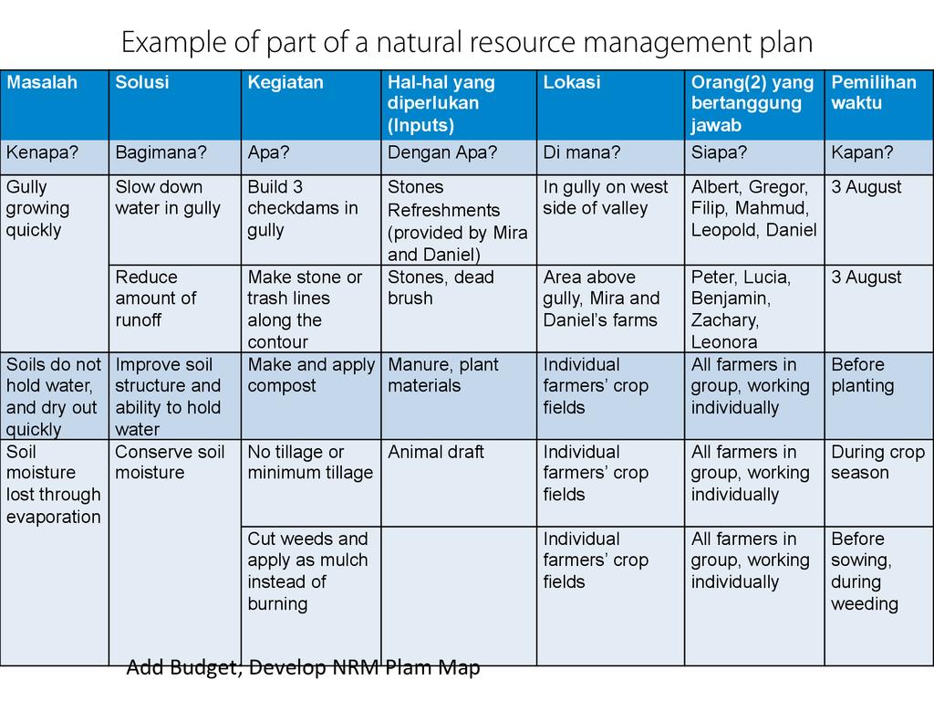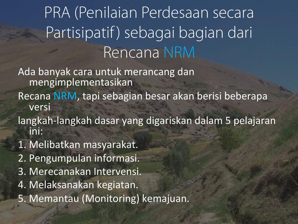 Perrencanan Pengelolaan Sumber Daya Alam (Natural Resource Management) dengan Penilaian / taksiran Perdesaan secara Partisipatif (Participatory Rural Appraisal)