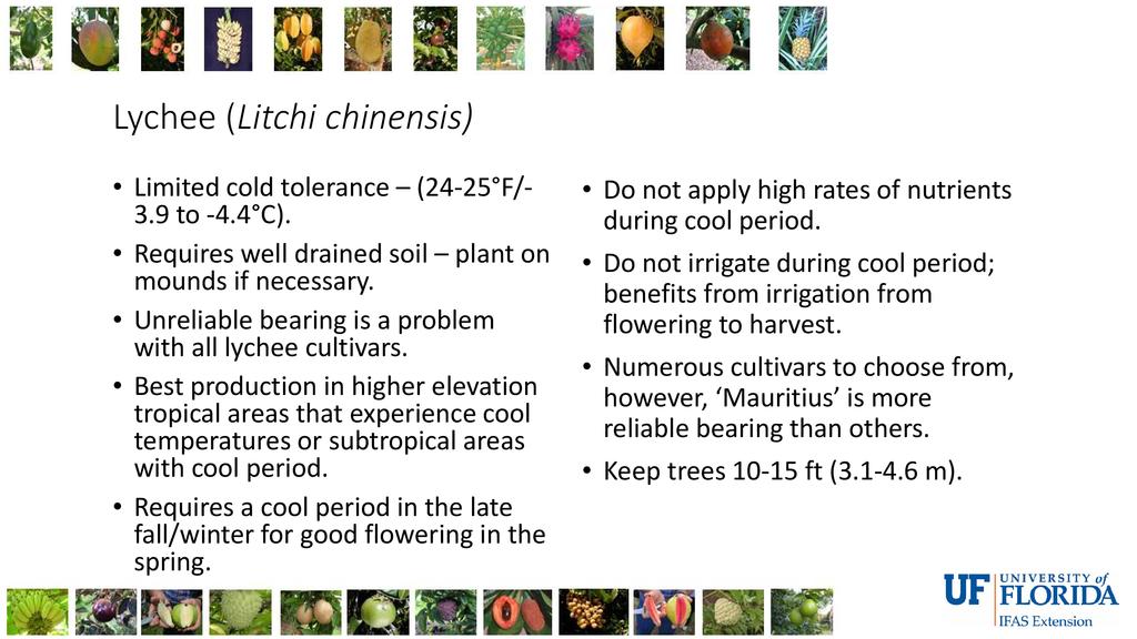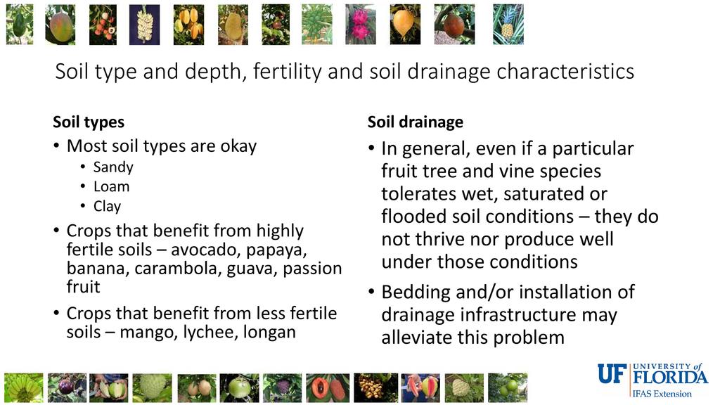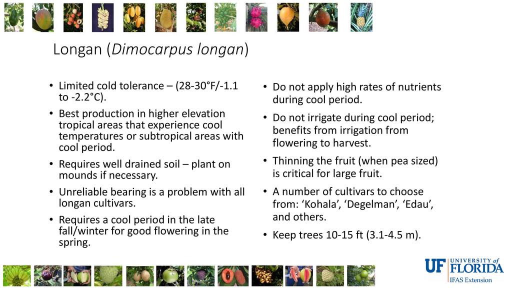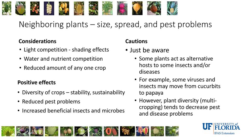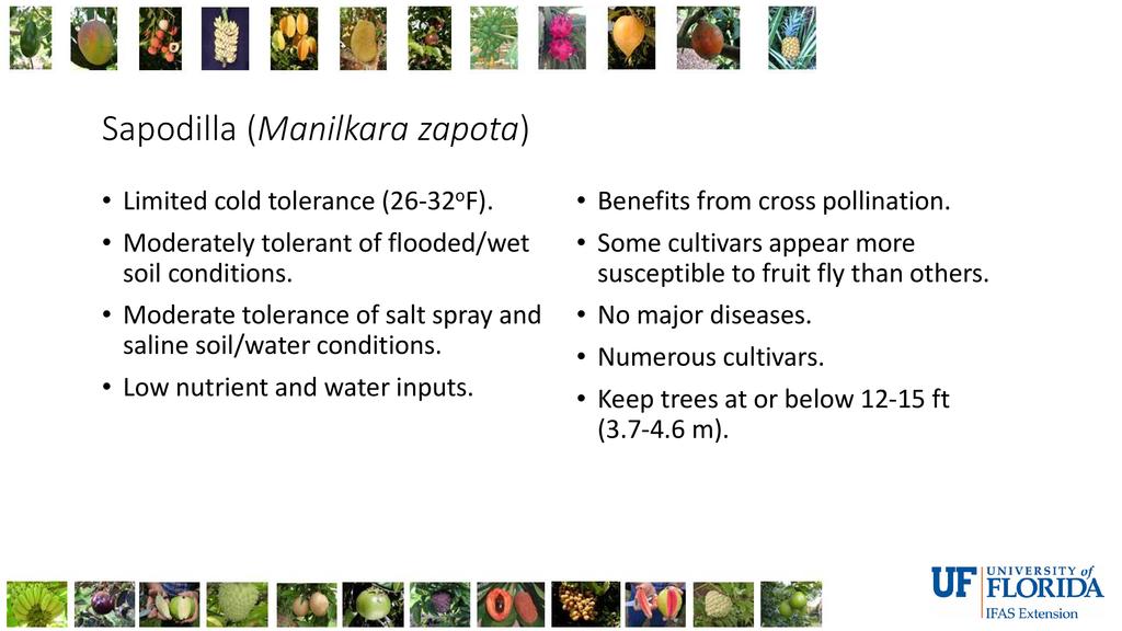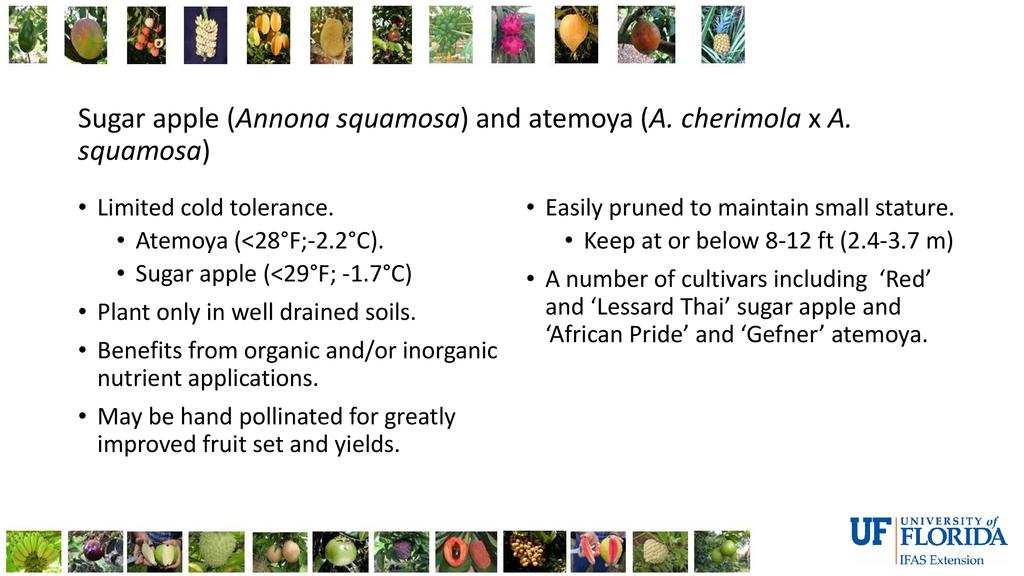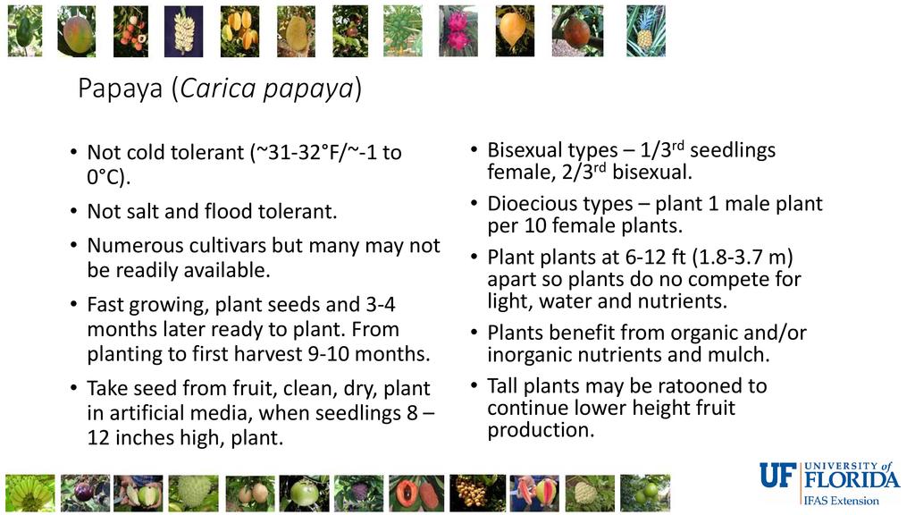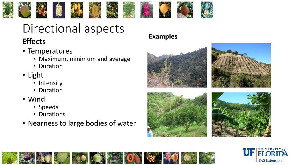 Topics to be presented include, matching the tropical and subtropical fruit crops to local environmental conditions as well as plant space and size management and low-input cultural practices for small holdings (nutrient, water, and pruning). Simple tactics for potential off-season cropping will also be discussed.