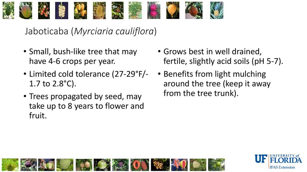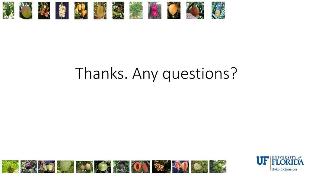 Presenter - Dr. Jonathan Crane, is the Tropical Fruit Crop Specialist with the University of Florida, IFAS, Tropical Research and Education Center, Homestead, FL. He has a Ph.D. in Horticulture from the University of Florida. Dr. Jonathan has 30 years experience with production systems for tropical fruit crops and primarily provides information and programs for local producers.